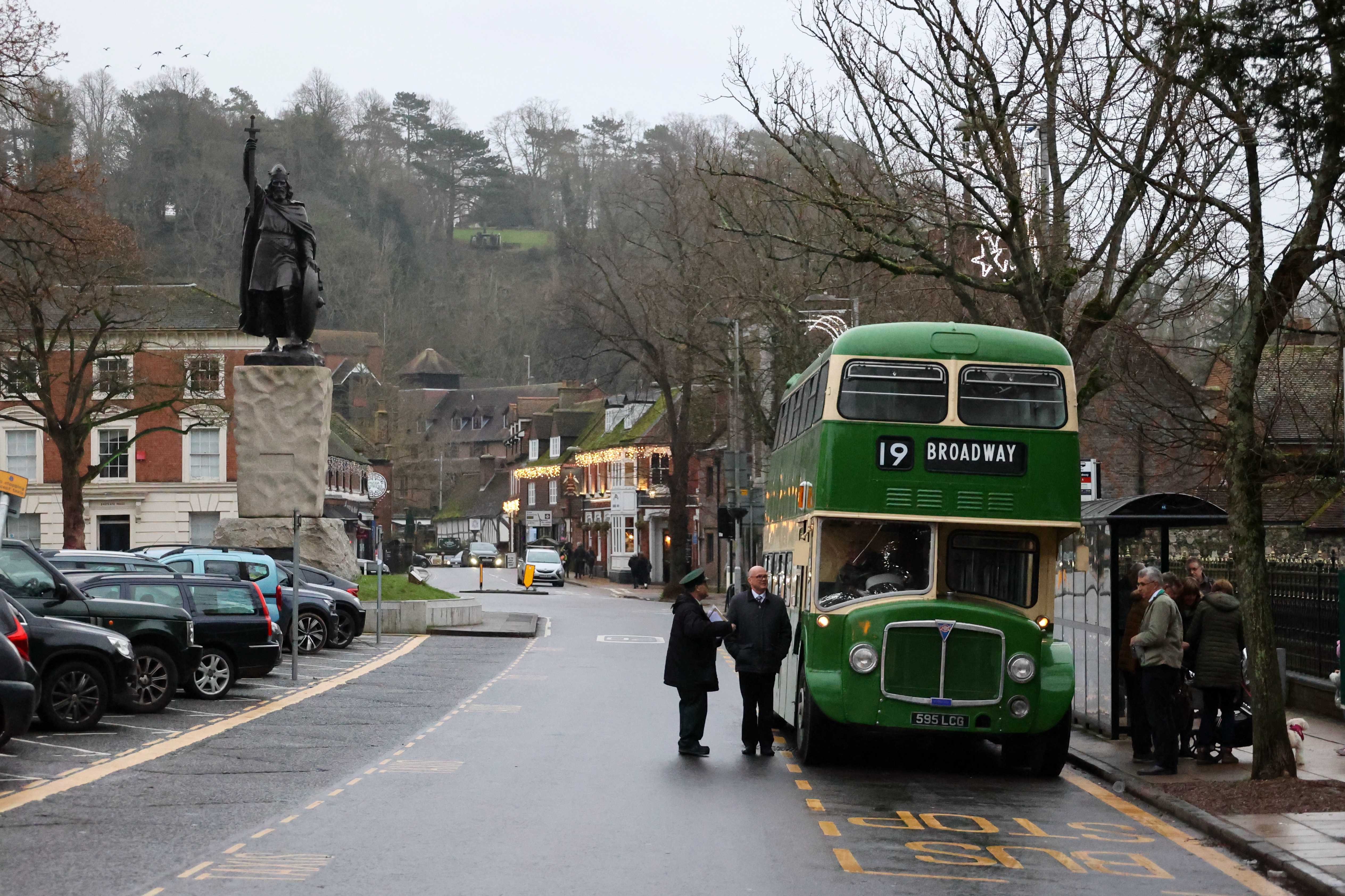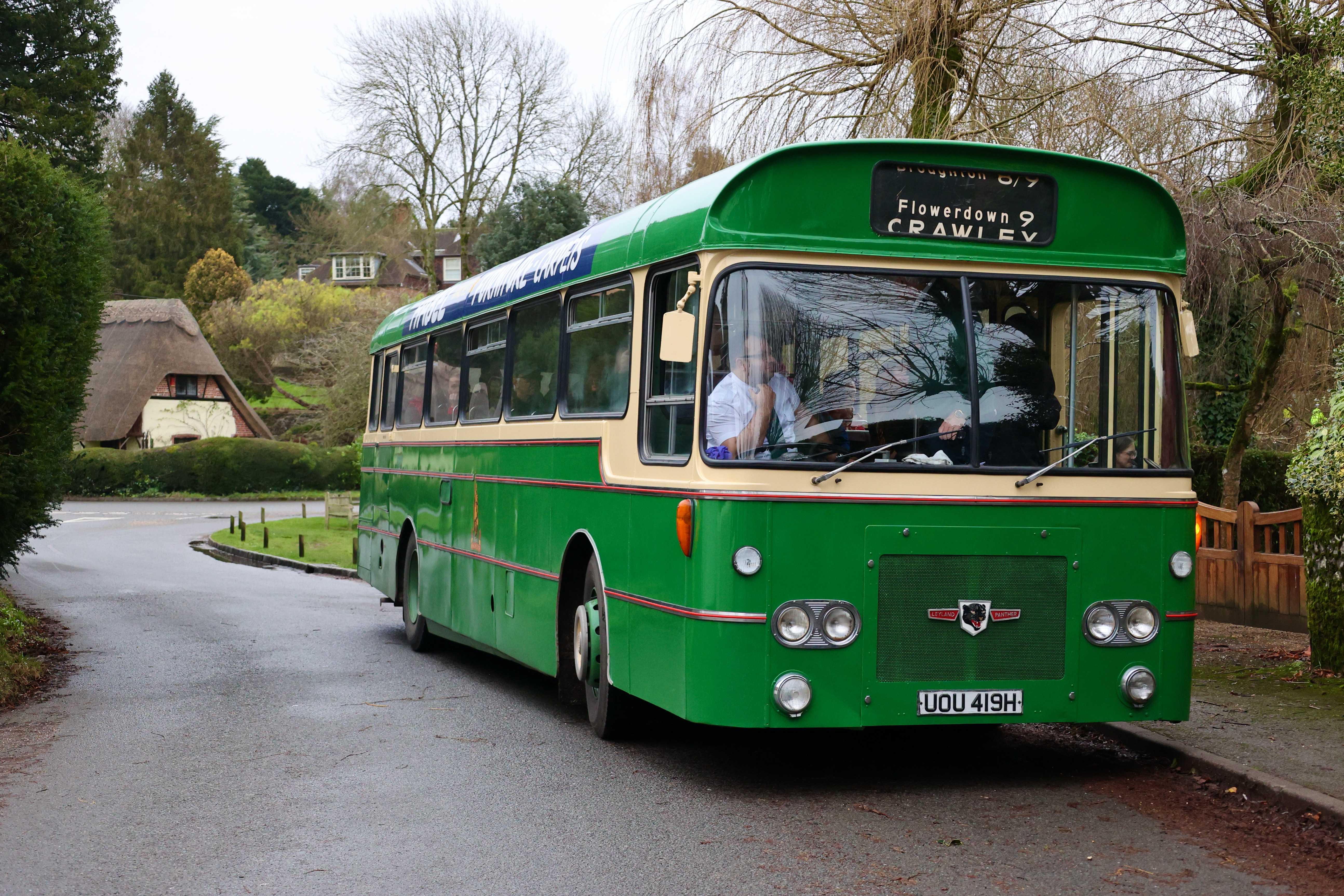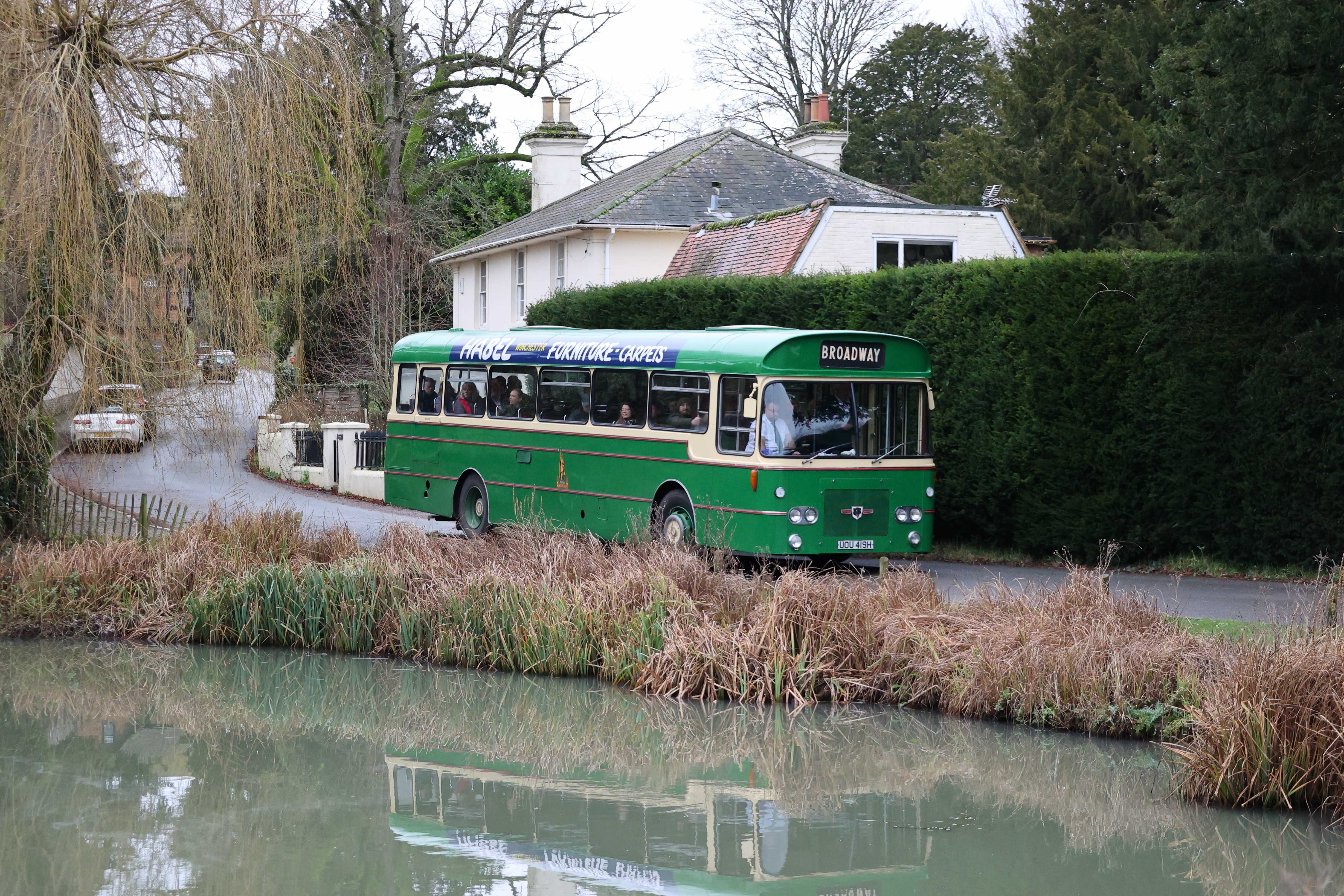 On a trip out to Crawley, the driver dropped anyone who wanted a photo by the duck pond of the bus returning from the turning point at the church.