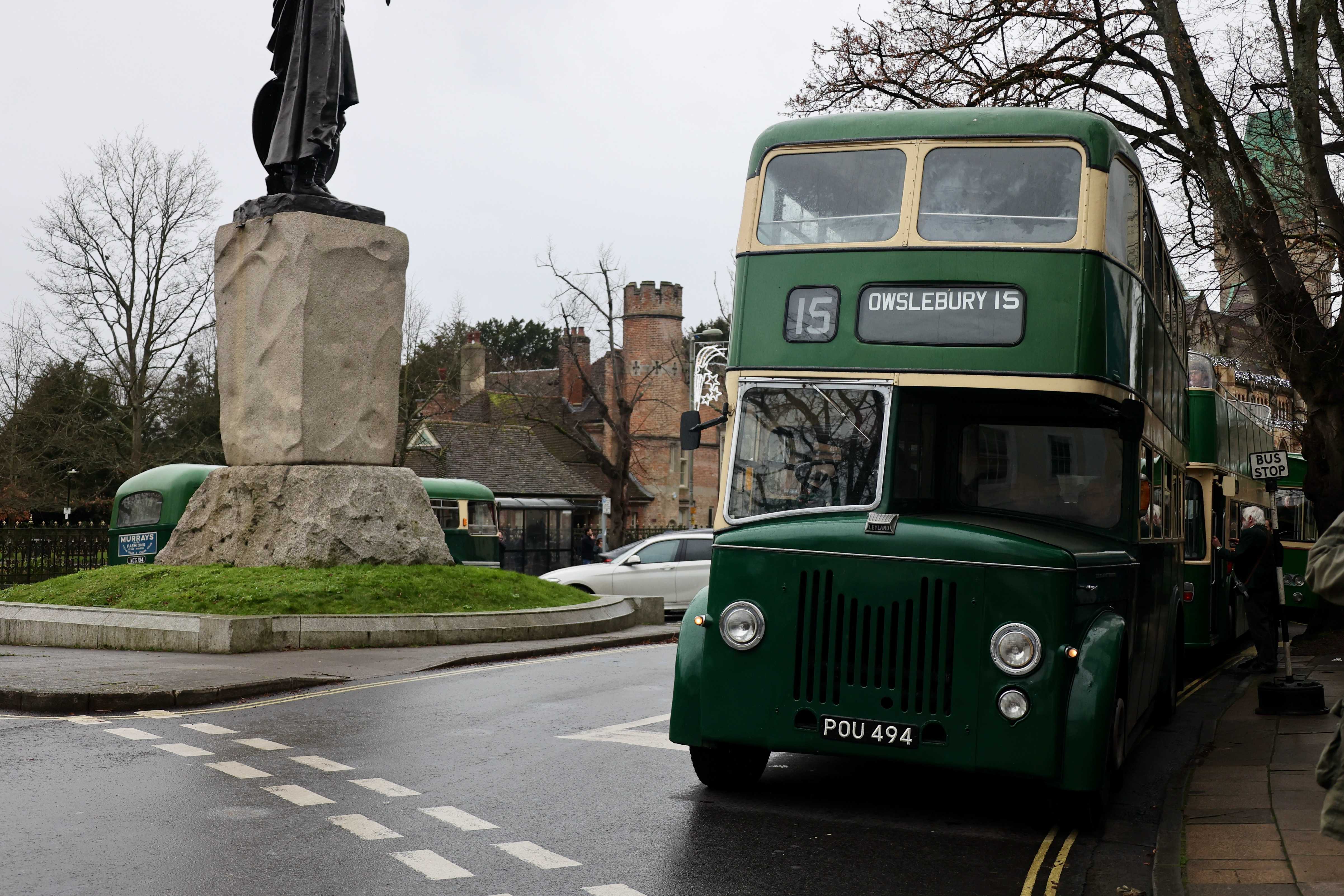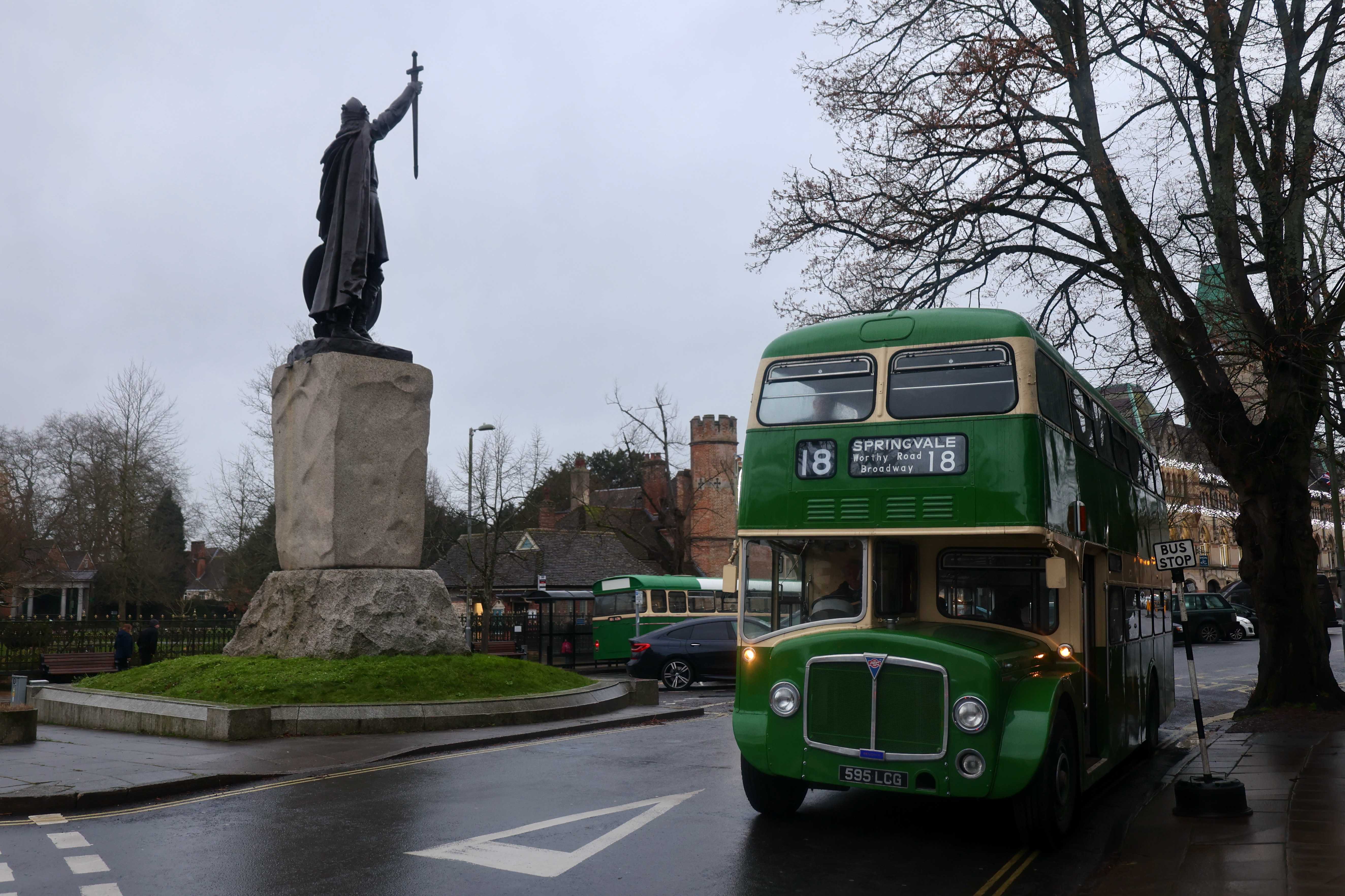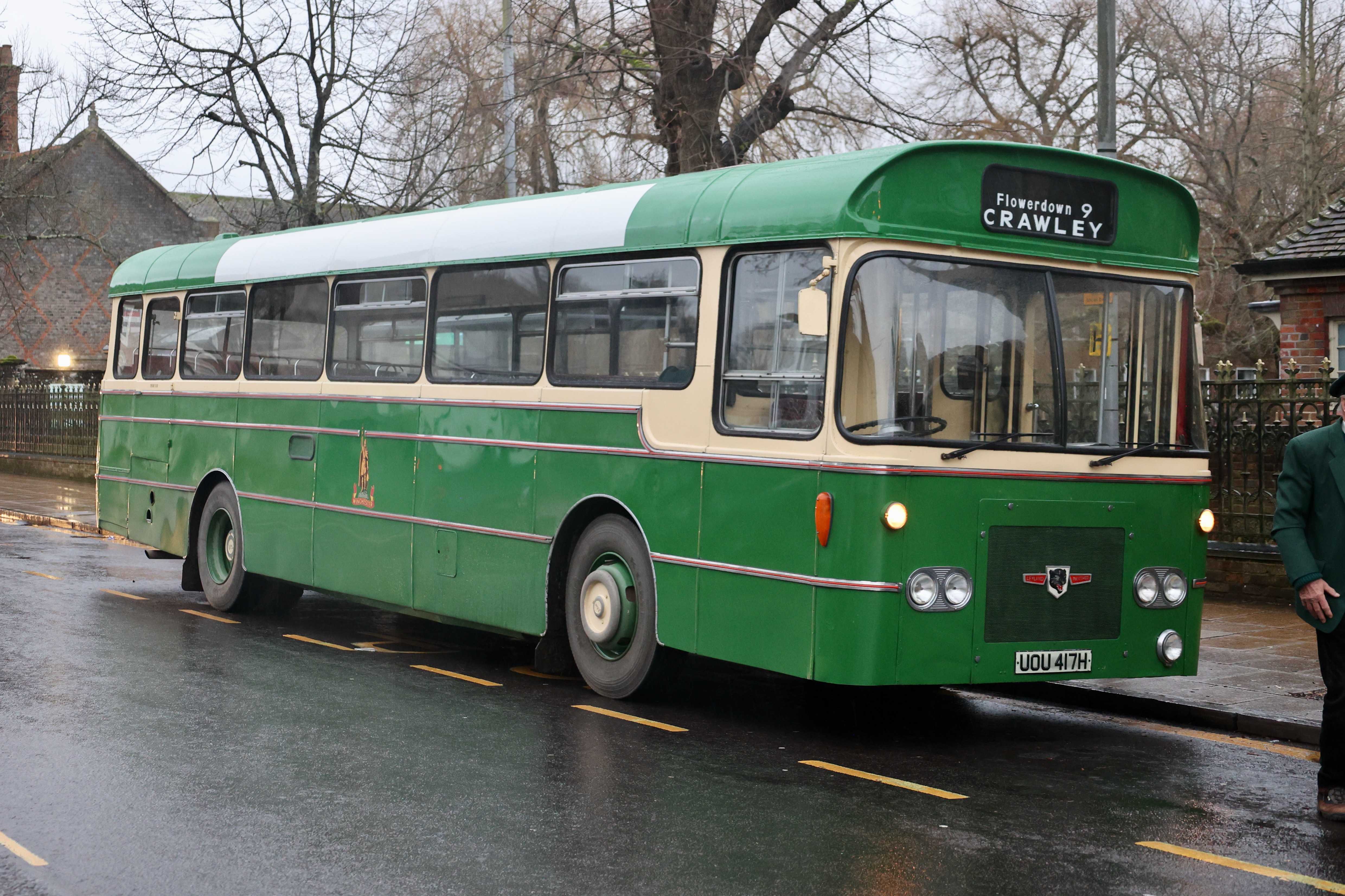 On a trip out to Crawley, the driver dropped anyone who wanted a photo by the duck pond of the bus returning from the turning point at the church.