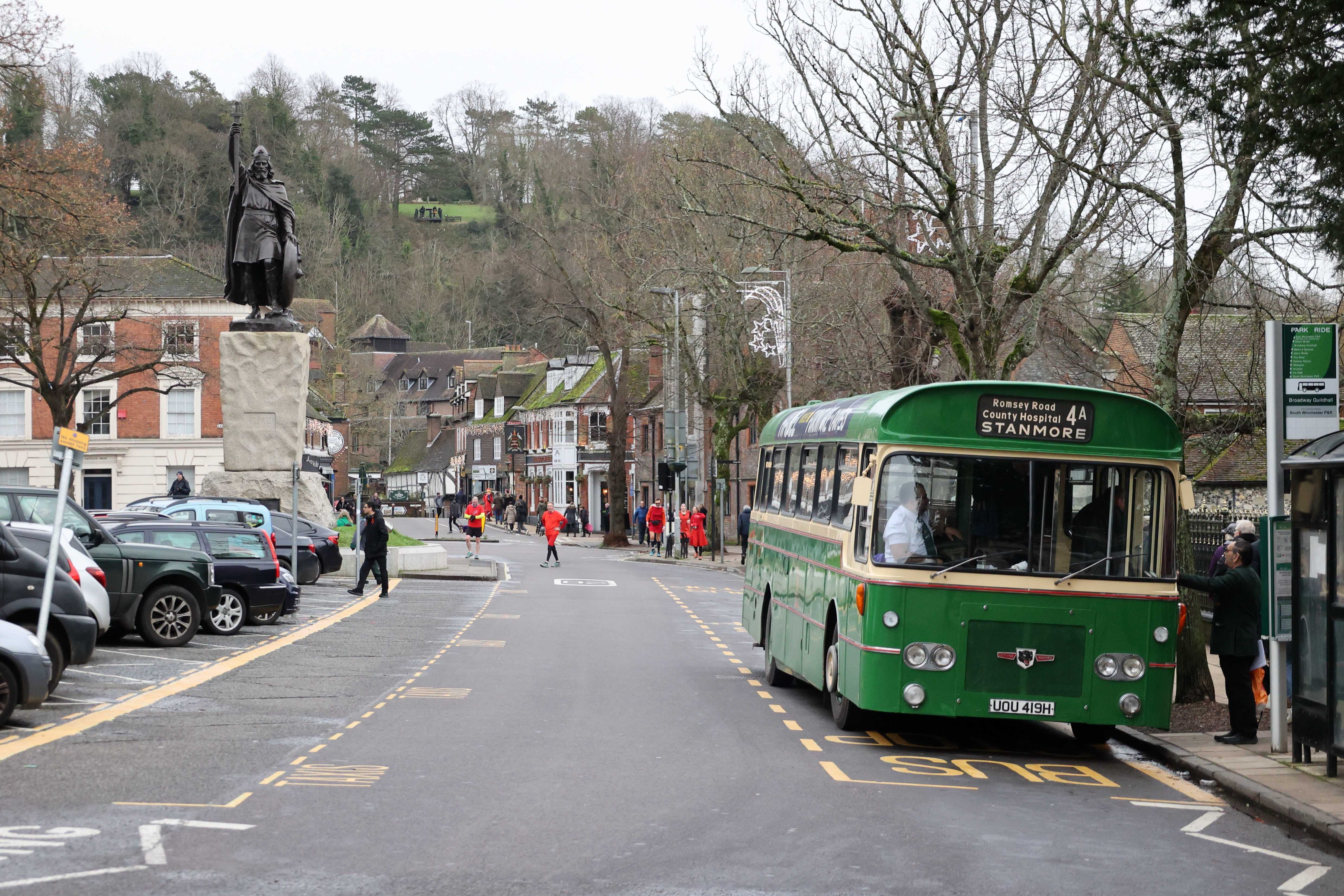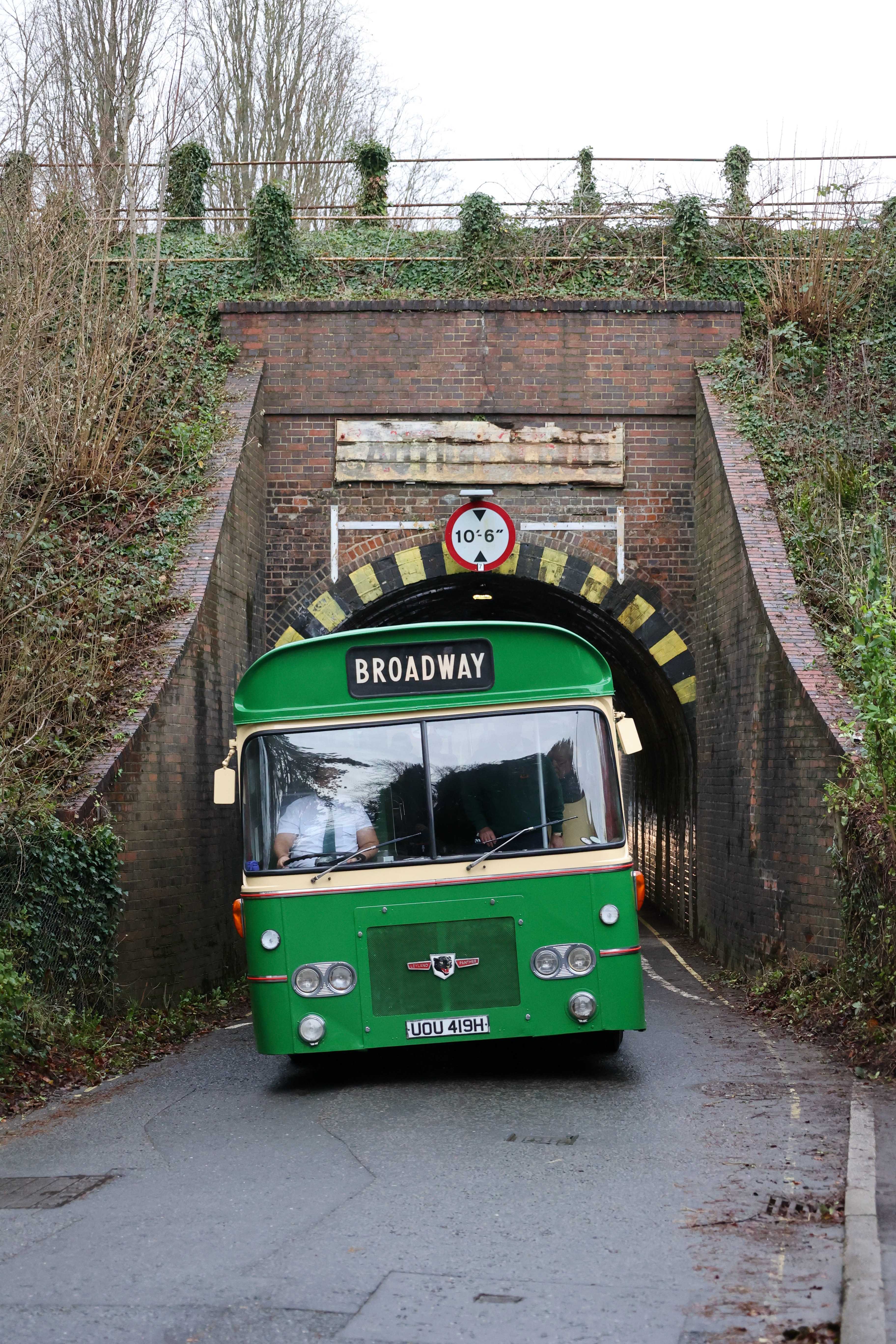 On a trip to Stanmore, the driver stopped to allow anyone wanting a photo to walk under the railway bridge on Stanmore Lane before the bus passed through.