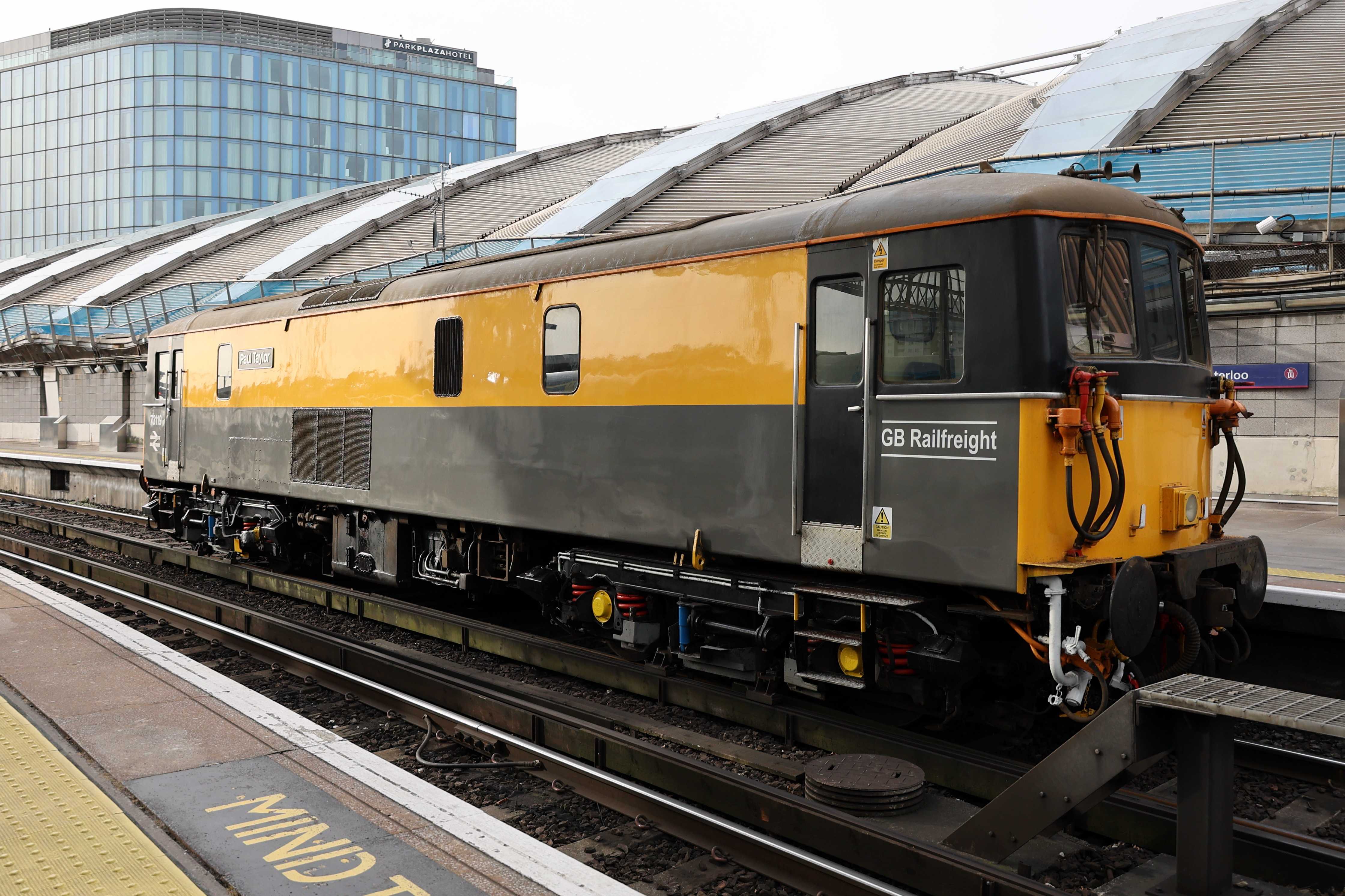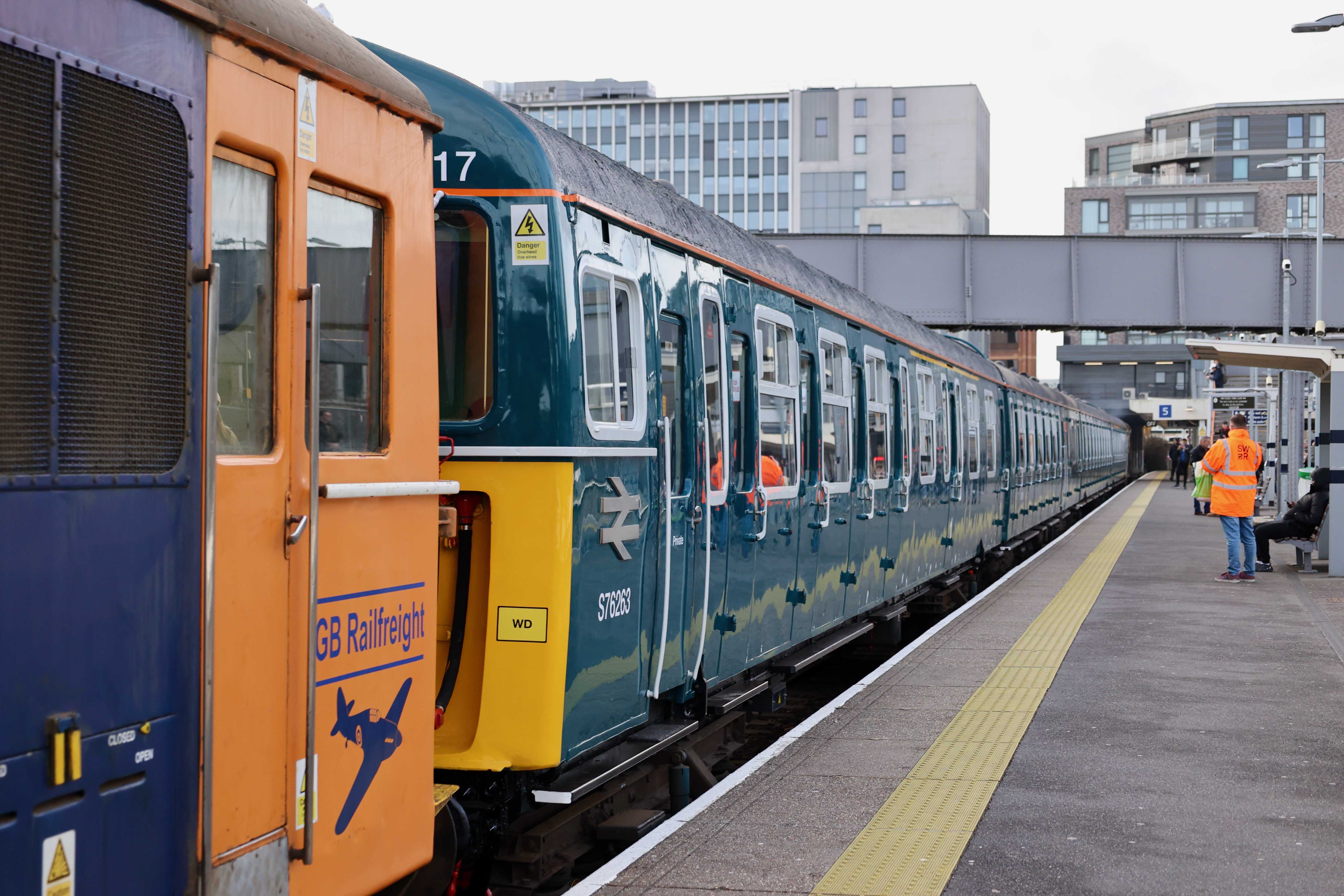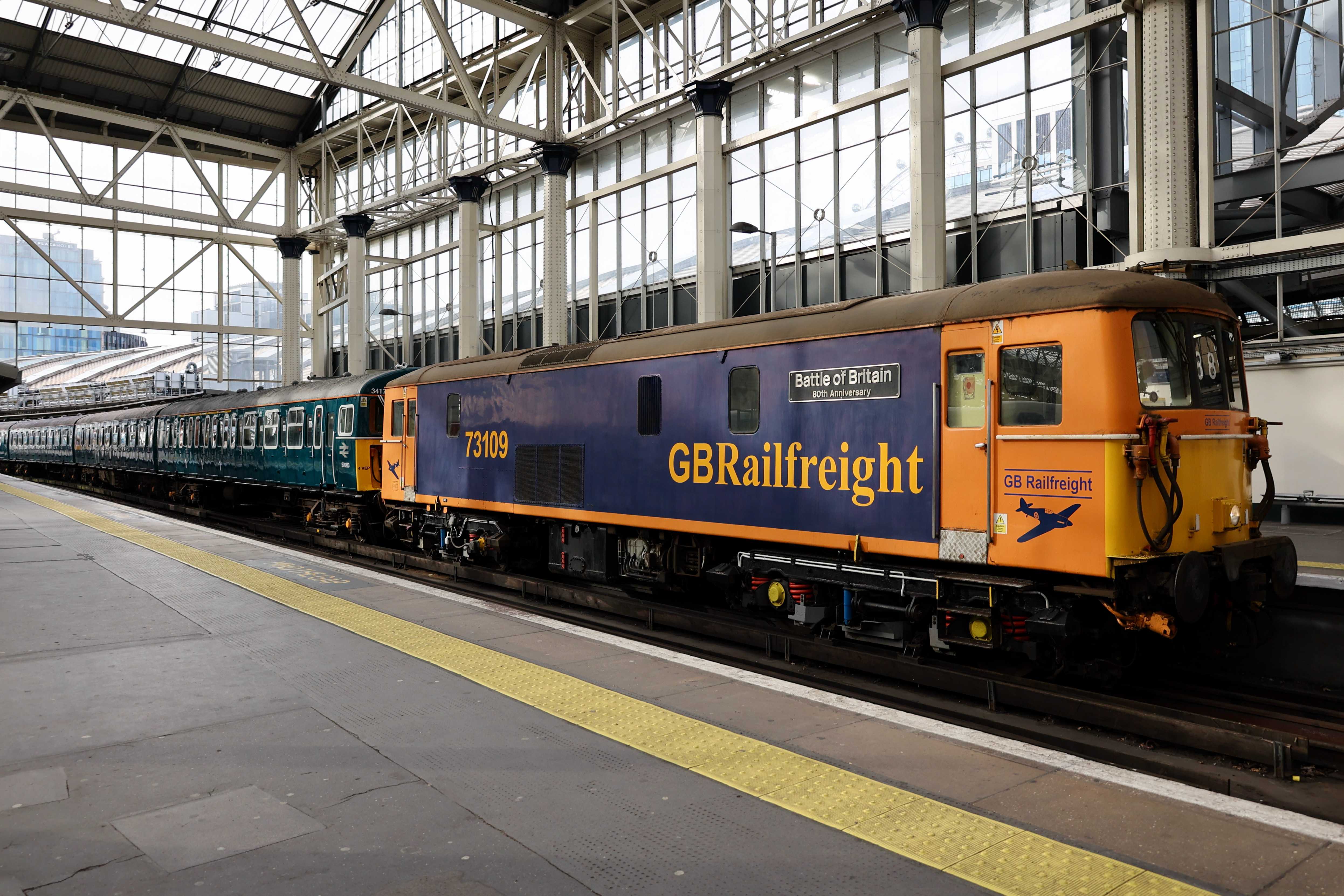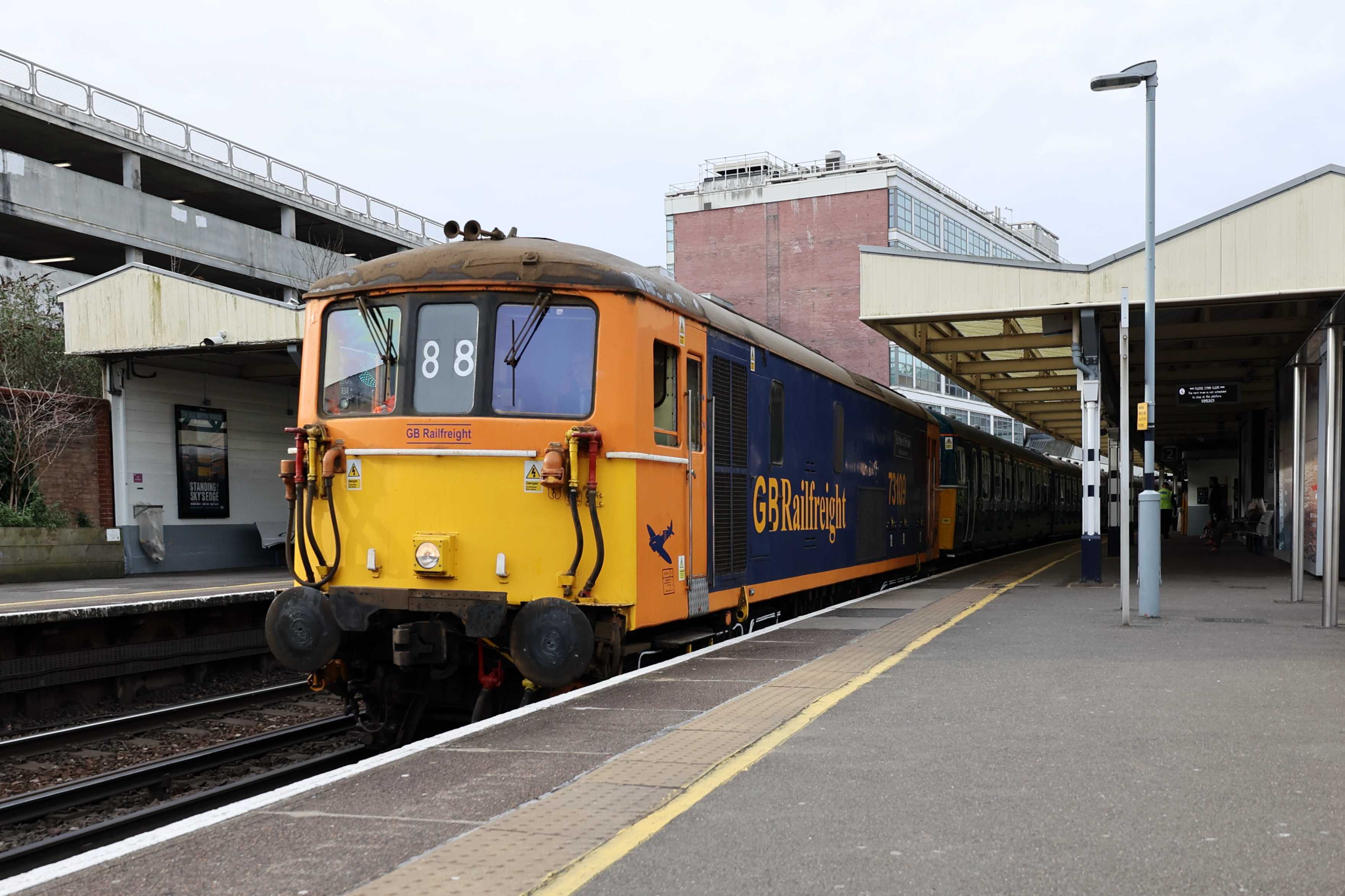 The unit was returned to the mainline certified list on 16th January 2024, however it still needs GSM-R and other safety features to be fitted before it can run under its own power. As a result today's trip from Strawberry Hill depot to Waterloo and back was top and tailed by a pair of GB Railfreight Class 73s, 73109 "Battle of Britain 80th Anniversary" and 73119 "Paul Taylor". The Class 73s came from Tonbridge West Yard as 0Z73 0744 Tonbridge West Yard Gbrf to Strawberry Hill C.S.D. and returned to Tonbridge West Yard after as 0Z74 1402 Strawberry Hill C.S.D. to Tonbridge West Yard Gbrf.