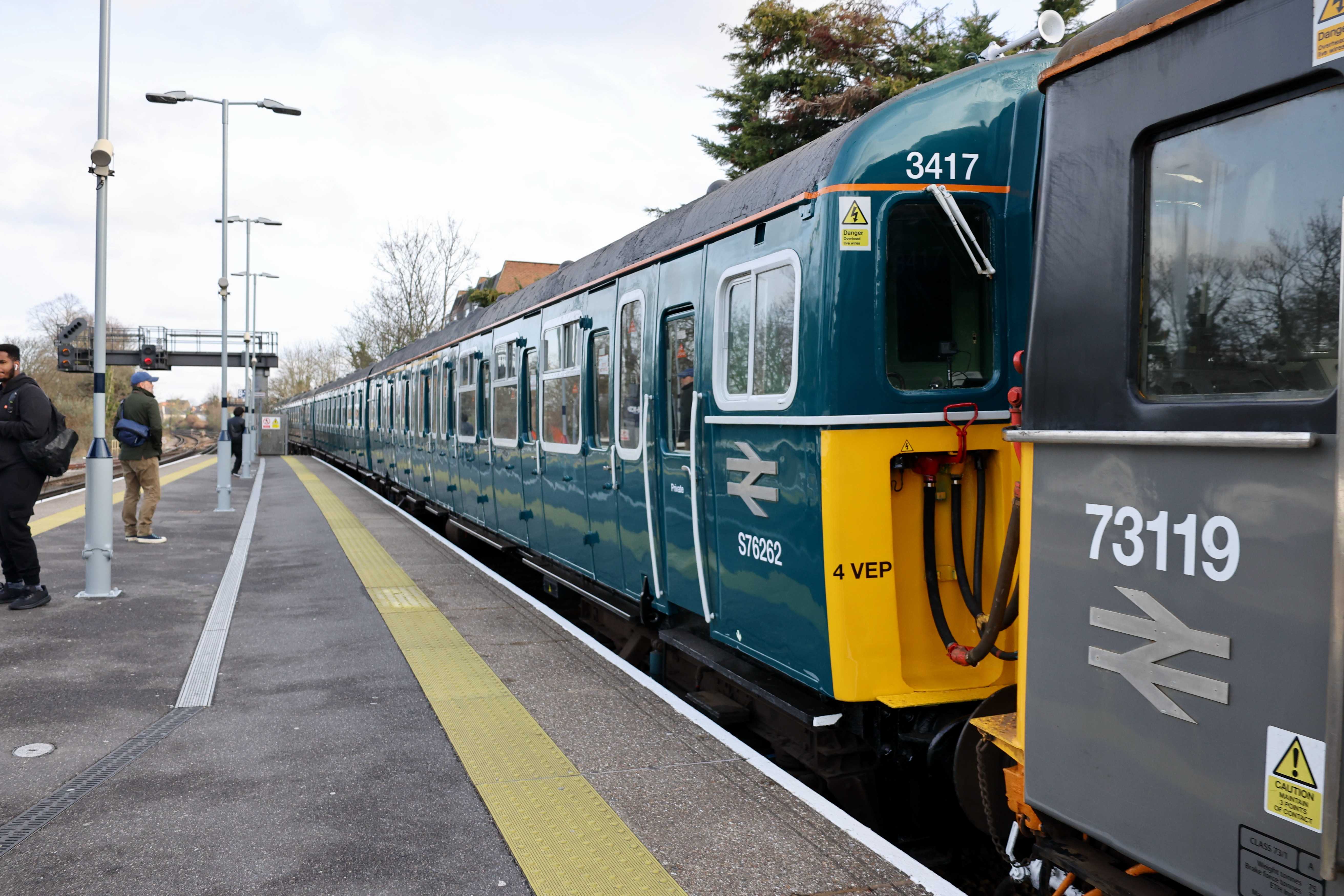 73109 stopped at the normal stopping position so remained coupled up to 3417, but 73119 had been uncoupled and moved back towards the country end of the platform. It was far enough from the 4VEP to allow for a clear view of the front but not so far that 450046 couldn't access the platform safely.