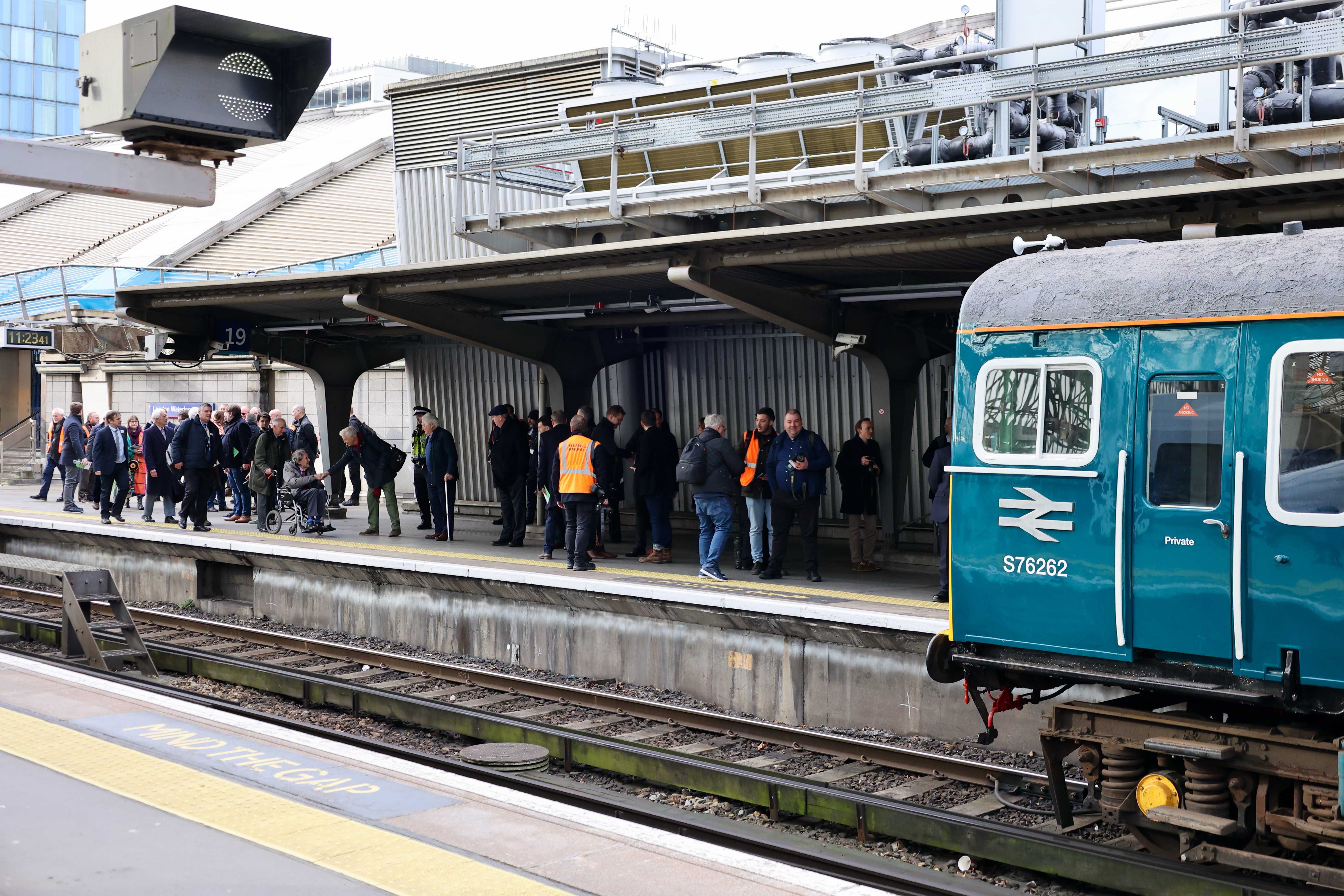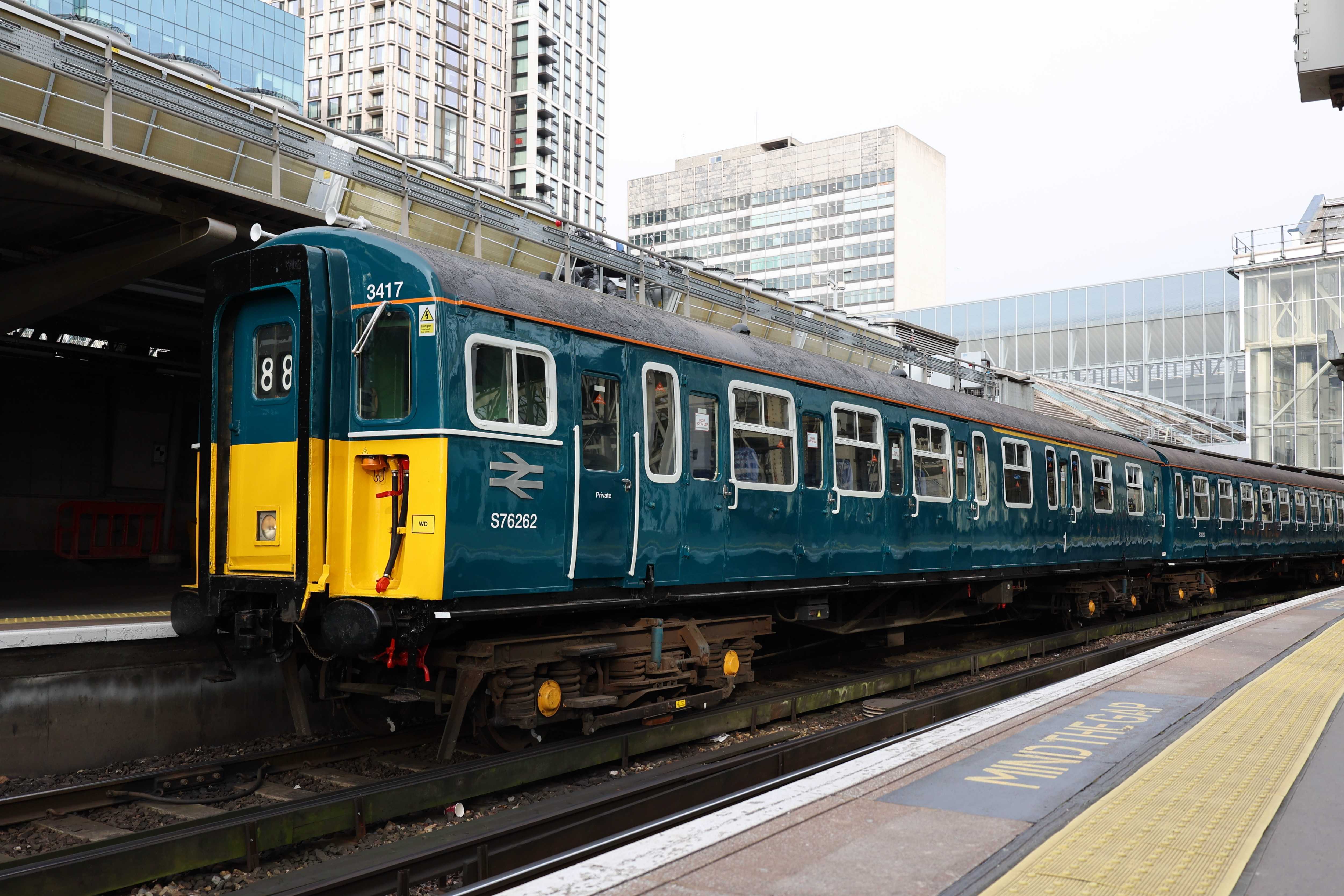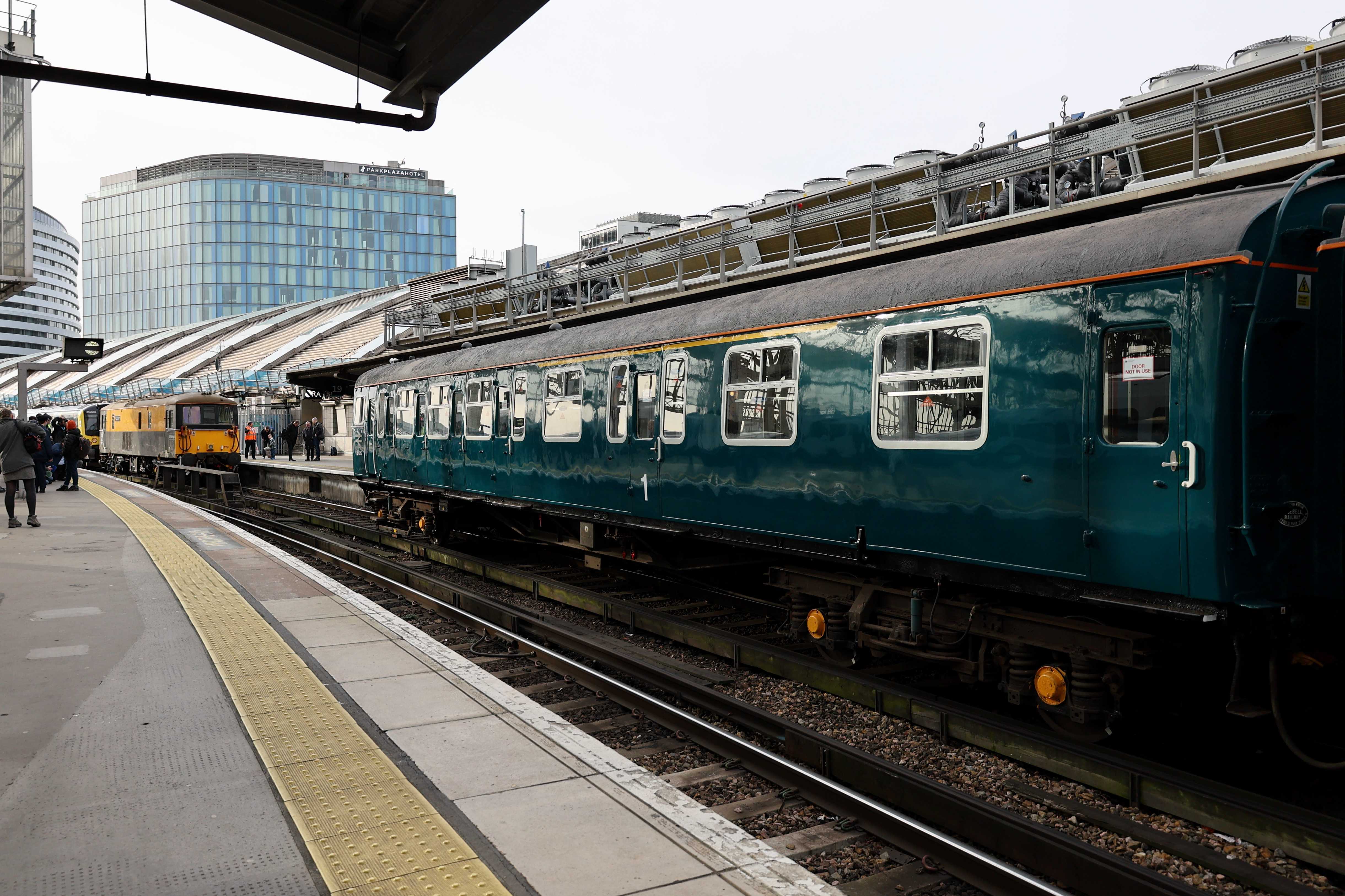 3417 arrived at London Waterloo on platform 19. This platform is the one most frequently used for events - such as the first class 701 in passenger service. The platform was closed during the event so barriers were placed across the entrances from platform 18 and 20, and the gateline was set to not allow any tickets through. Platform 18 though is infrequently used on a Saturday, an may have been specifically kept empty, so photos of 3417 and the 73s could be taken without too much difficulty.