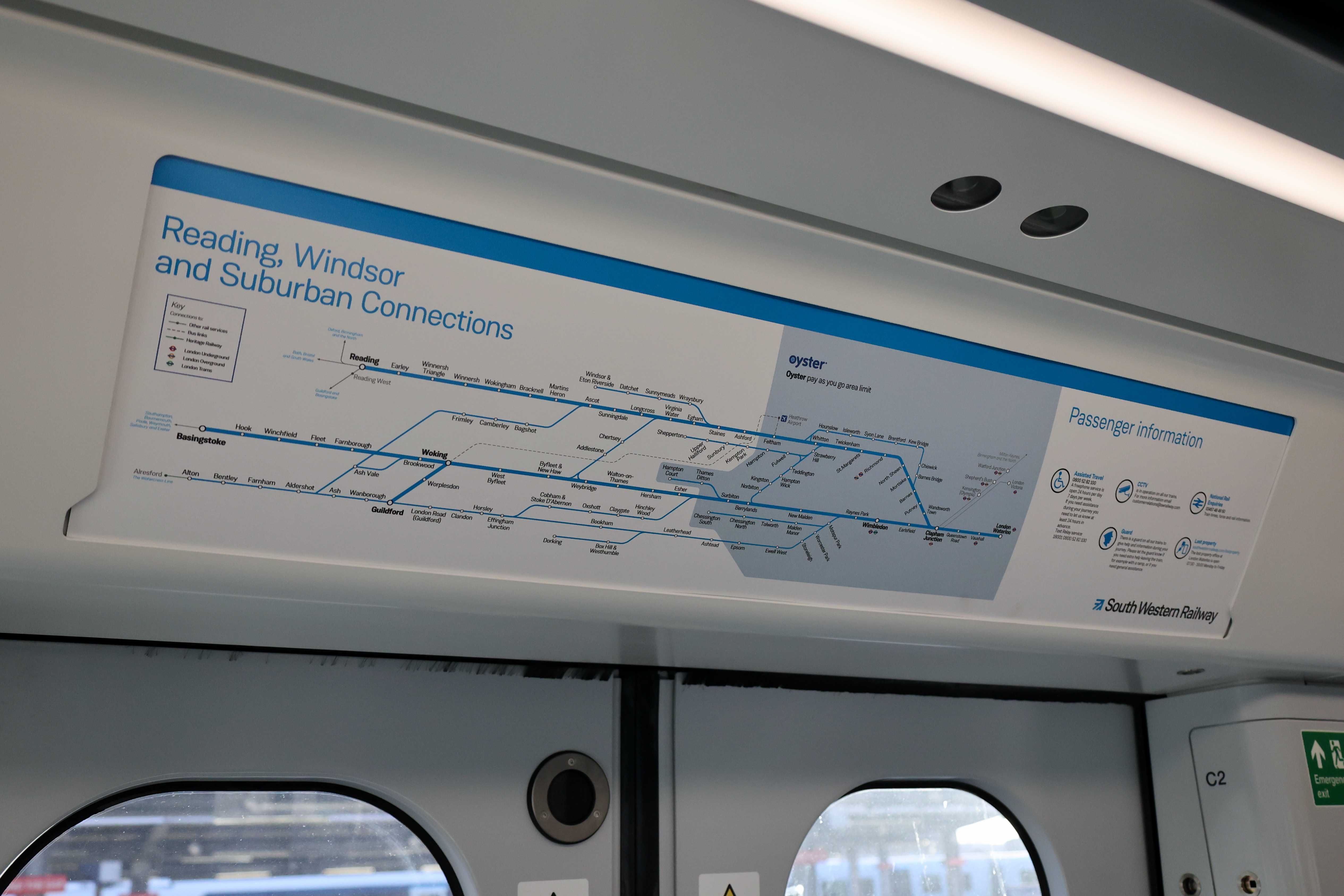 Another notable feature by the doors is the SWR Suburban carriage map. The Class 455s still have their South West Trains route maps from at least before 2017, Class 458 and Class 707 units don't have route maps and the Class 450s are used on long distance services as well as suburban so don't have route maps either. This means that this is the first use of a suburban route map. South Western Railway clearly dividing services into long distance and suburban moving forward with the 701s, rather than the intercity, suburban and metro of South West Trains.