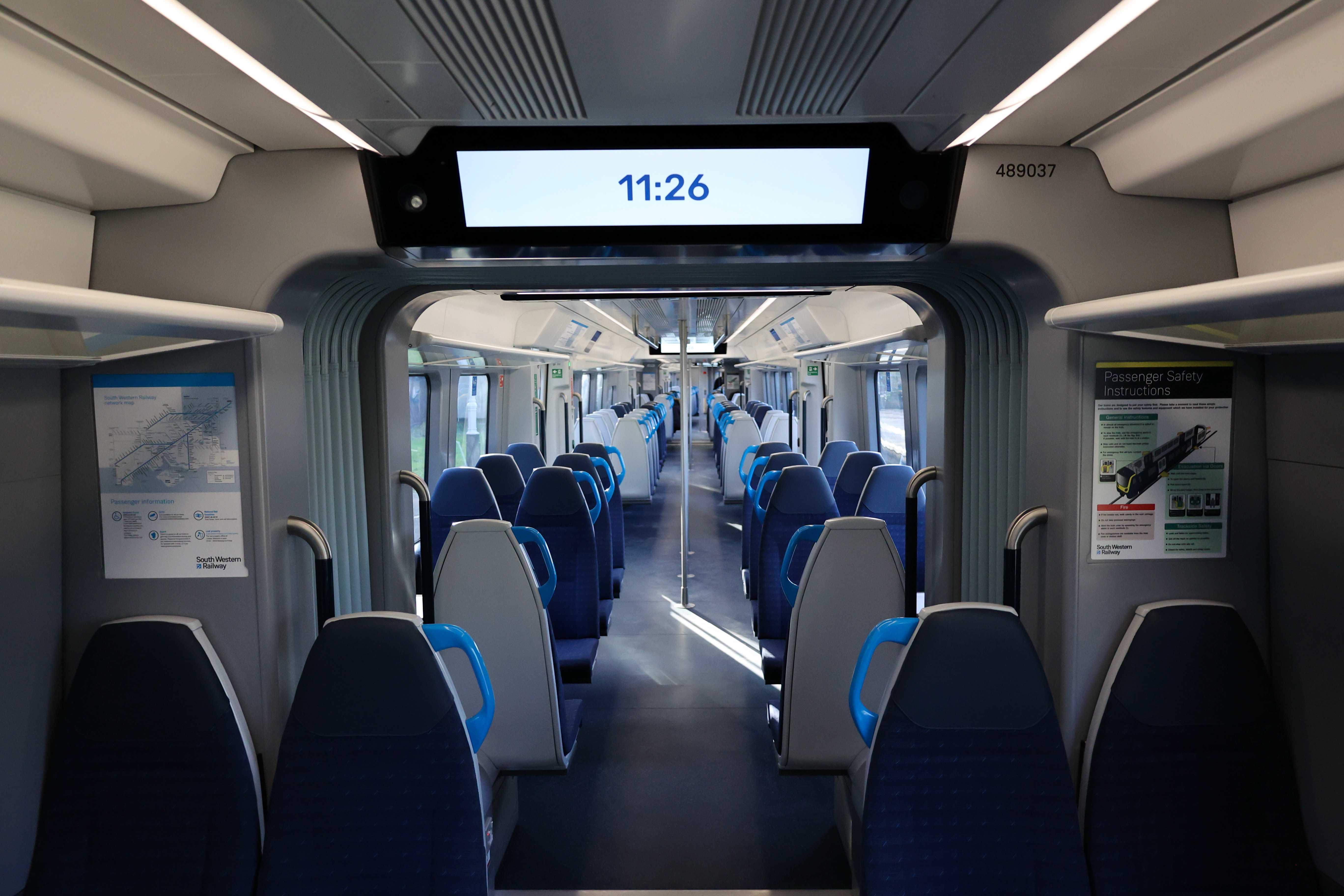 A new feature to this Aventra family train (unless the 730s feature it) is an information screen located beside the route map by the doors. During the round trip today, it displayed the South Western Railway logo, the date and time and the next station name. Maybe in the future, when there are more 701s in use, SWR will use this display for other information as well.