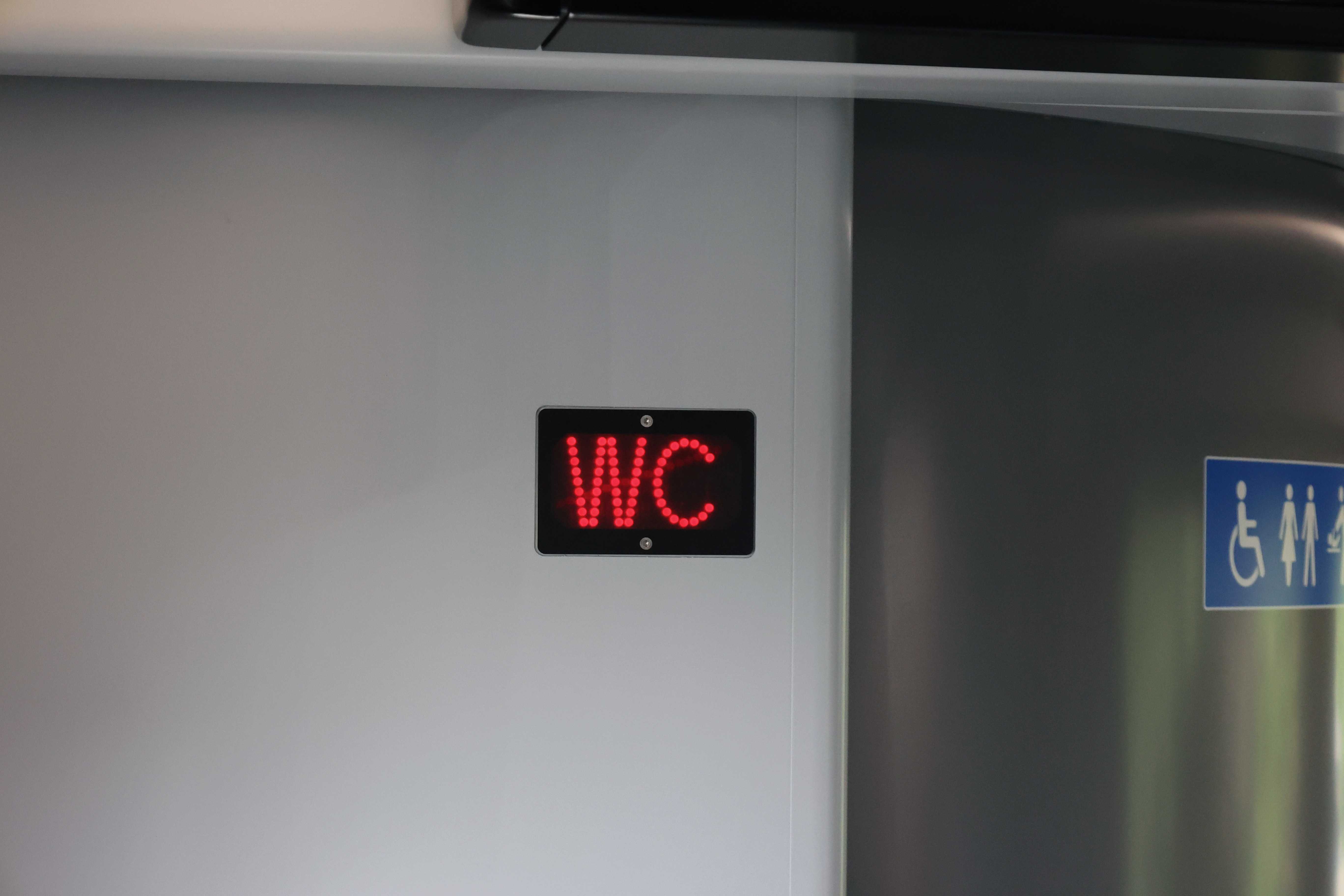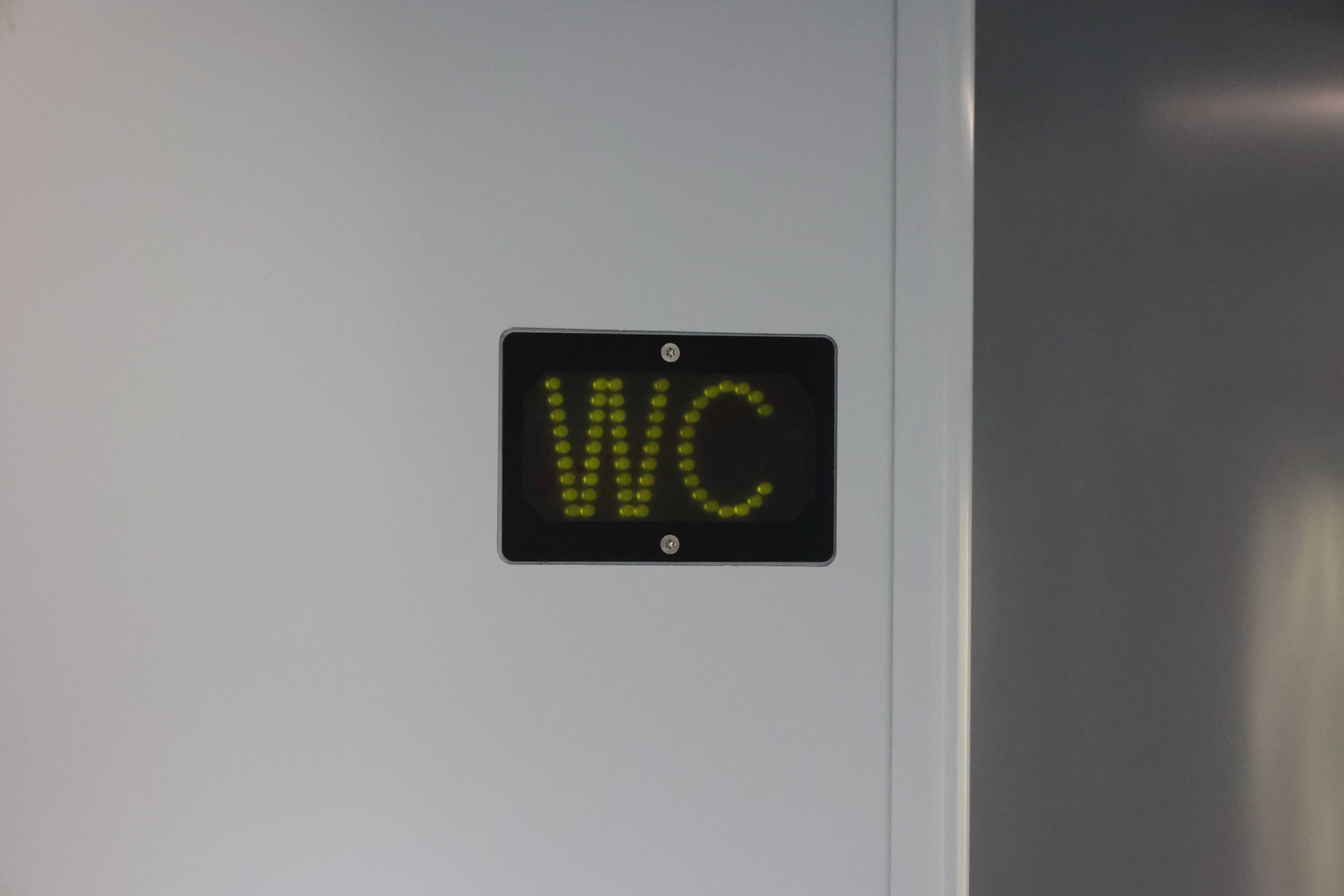 Something I haven't seen done before like this is using red and green LEDs to signify if the toilet is in use or not on the outside. This is a far more noticeable sign than the small red lightbox on the Class 450s. There is also a line of LEDs that can cross out the WC text for if the toilet is locked out of use.