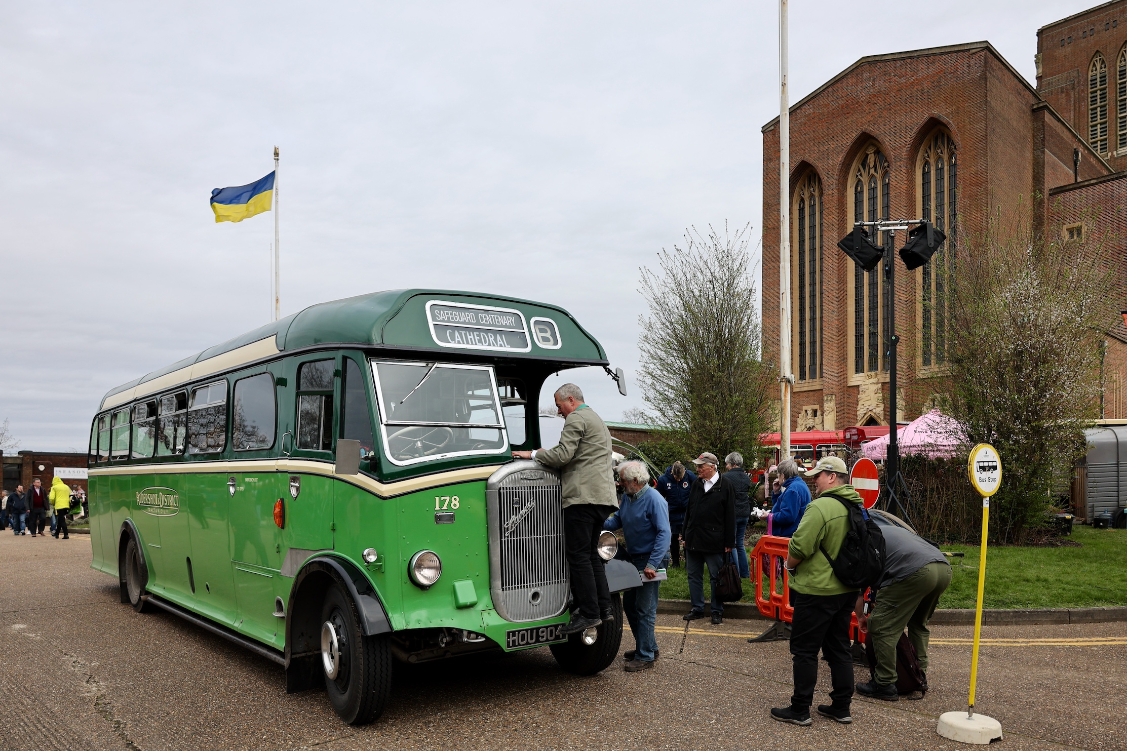 Lined up outside the cathedral building were a number of vehicles from Safeguard's history