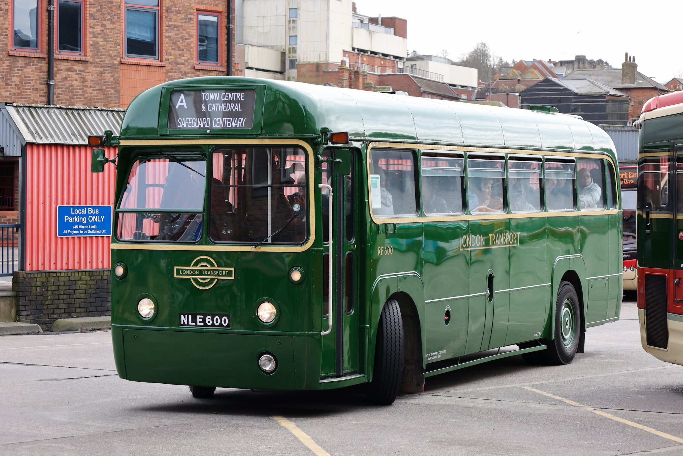 The first London Transport vehicle was RF600 (NLE 600), an AEC Regal Mark IV.