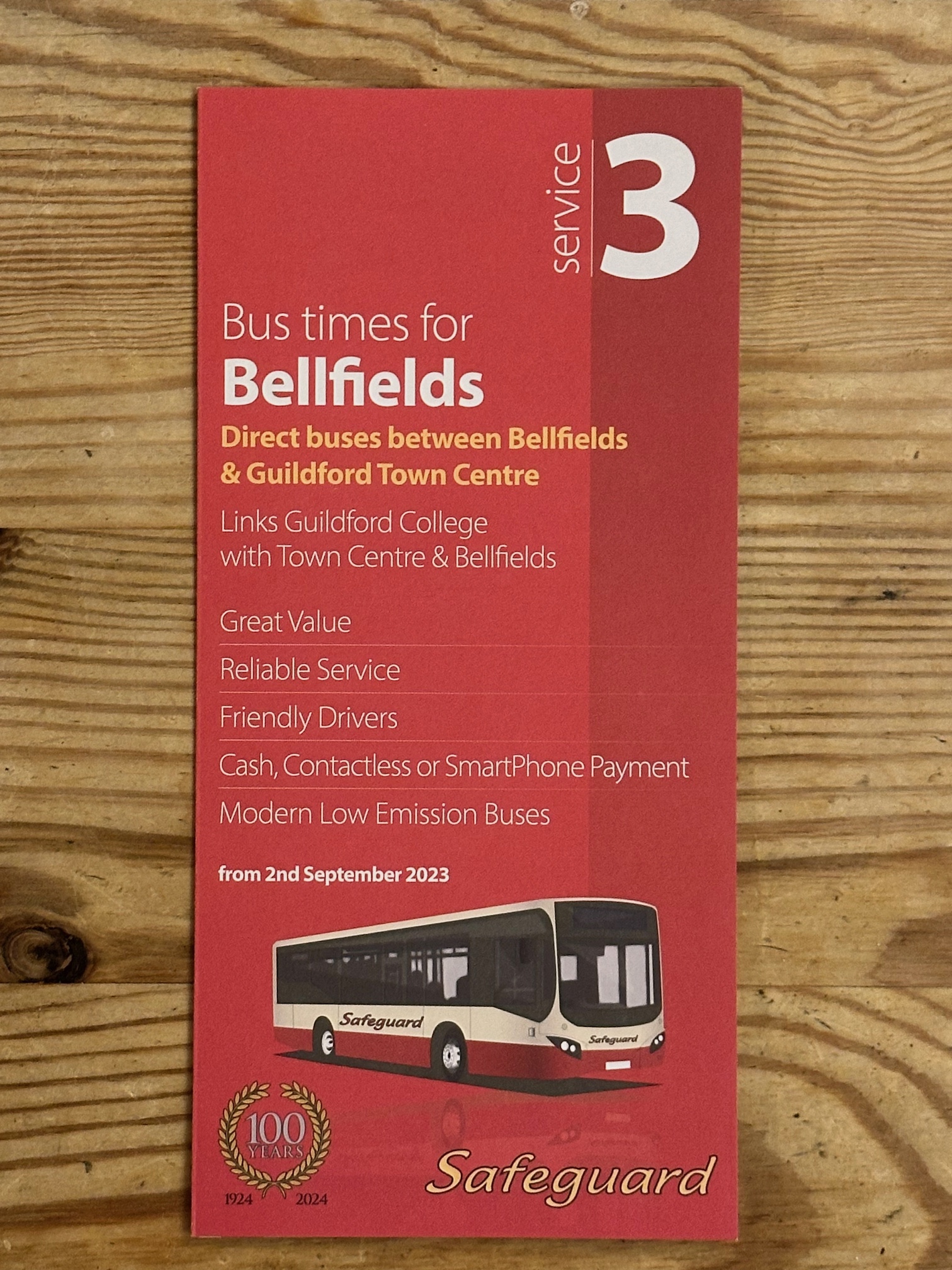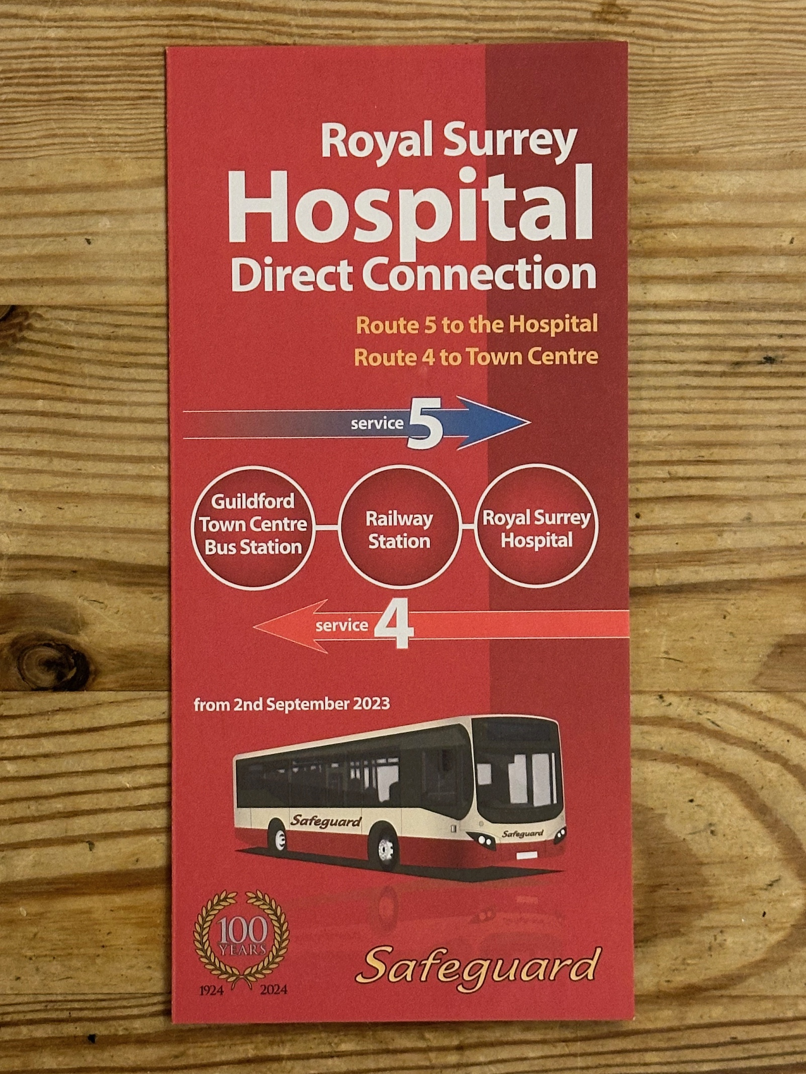 Also included was a set of timetables for Safeguard services and information about connections to the Royal Surrey County hospital.