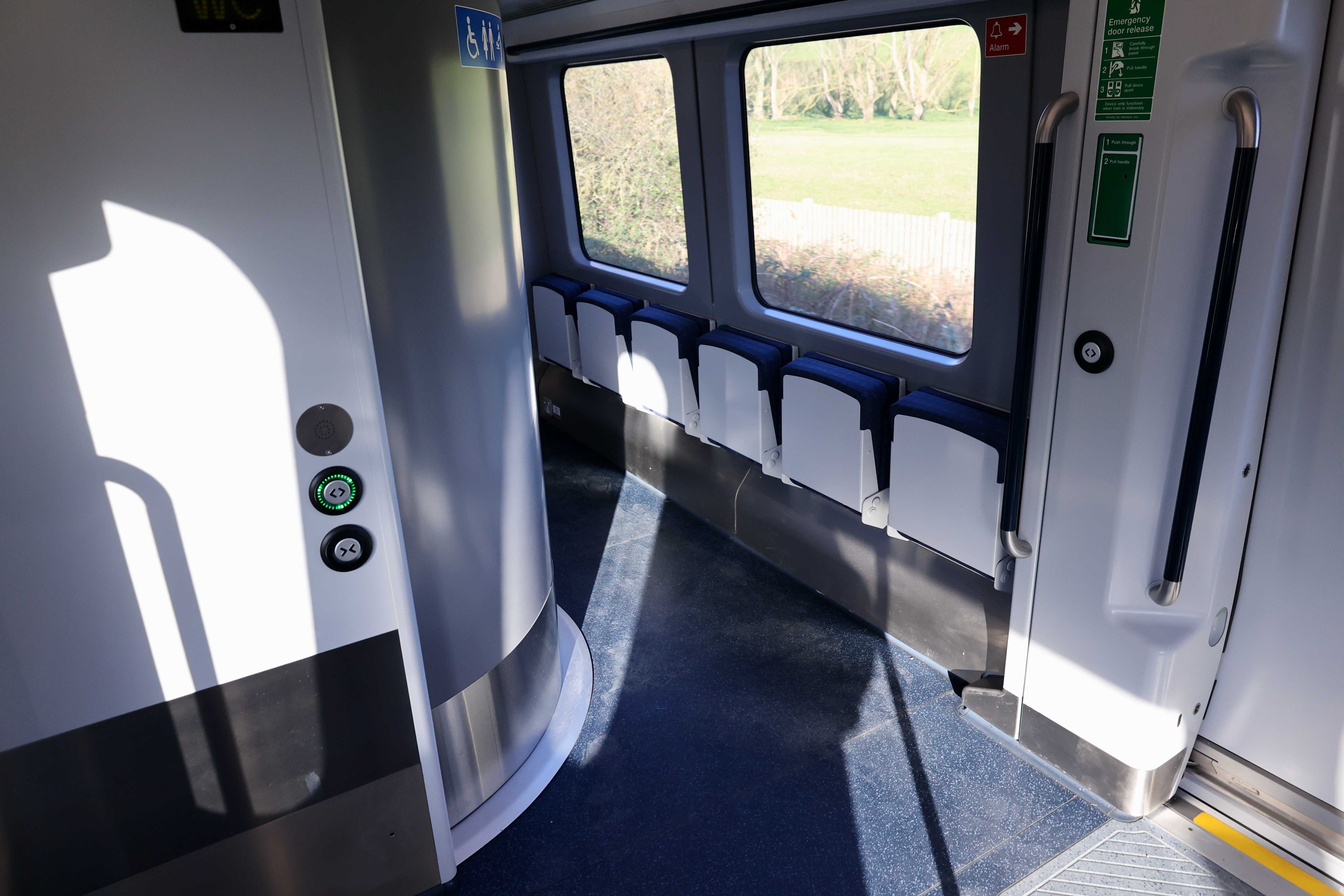 The 10 car 701/0s feature 2 accessible toilets and the 5 car 701/5s feature a single accessible toilet. The area around has tip down seating, however it was noted that the middle tip down seats do block the way past the toilet when they are in use.