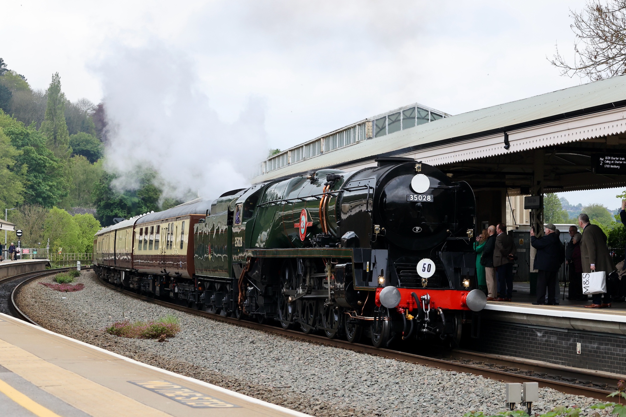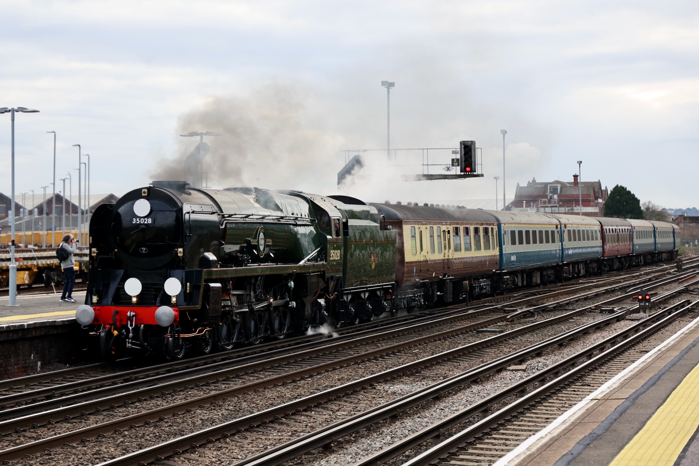 35028 Clan Line marks the end of steam on the Southern Region with the annual End of Southern Steam tour from the Railway Touring Company to Yeovil and Weymouth.