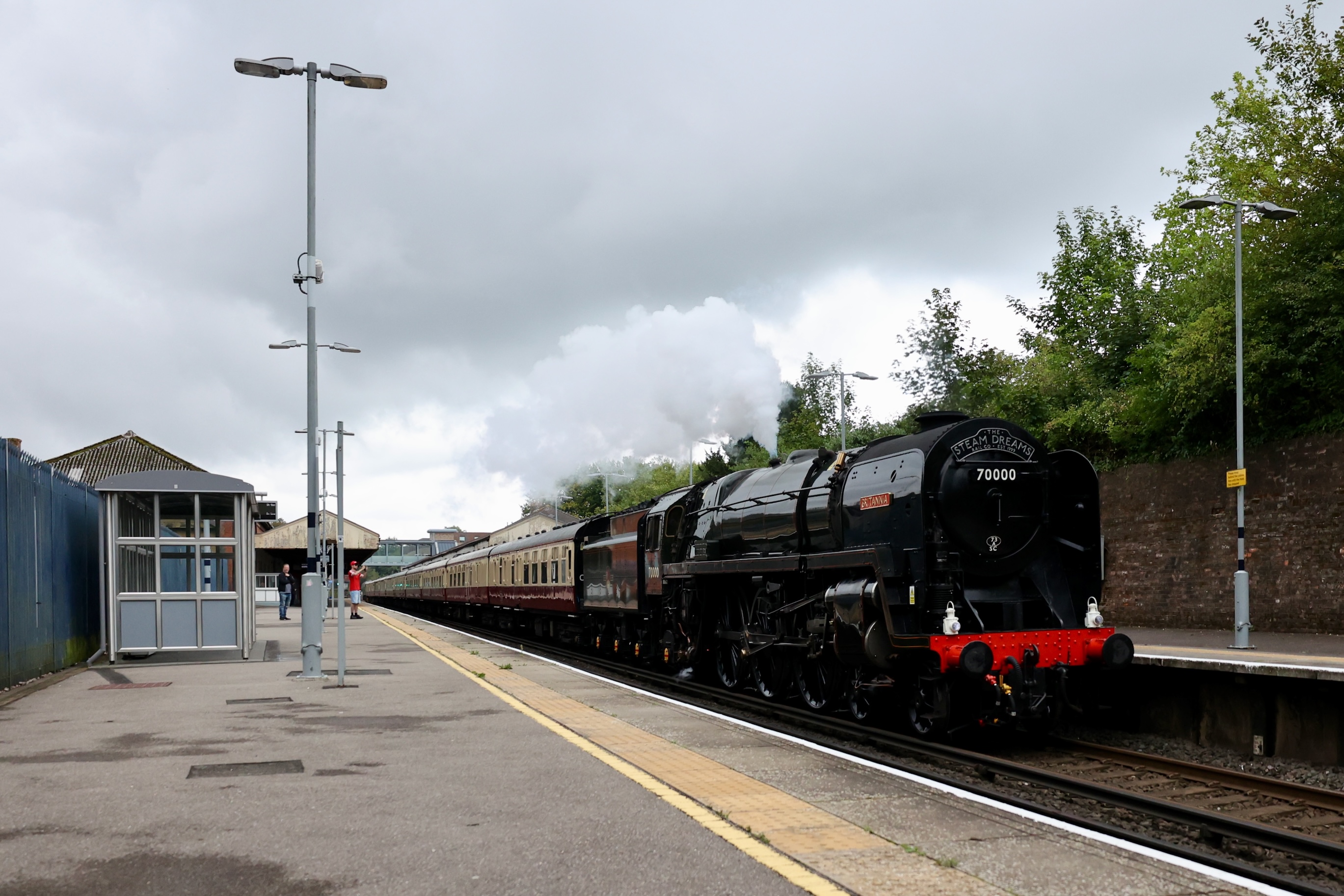 Steam Dream's returns to Winchester with 70000 passing on the way to Goodwood from London and 35028 "Clan Line" operates another Belmond Golden Age of Travel by Steam to Dover.