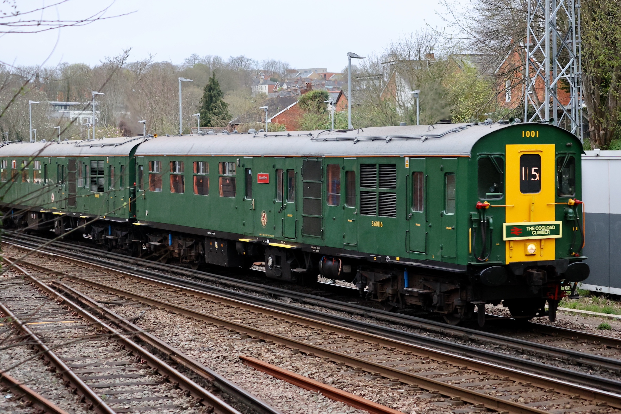 On the way between Eastleigh and London Waterloo, the tour passed Winchester where I saw it pass just north of the station.