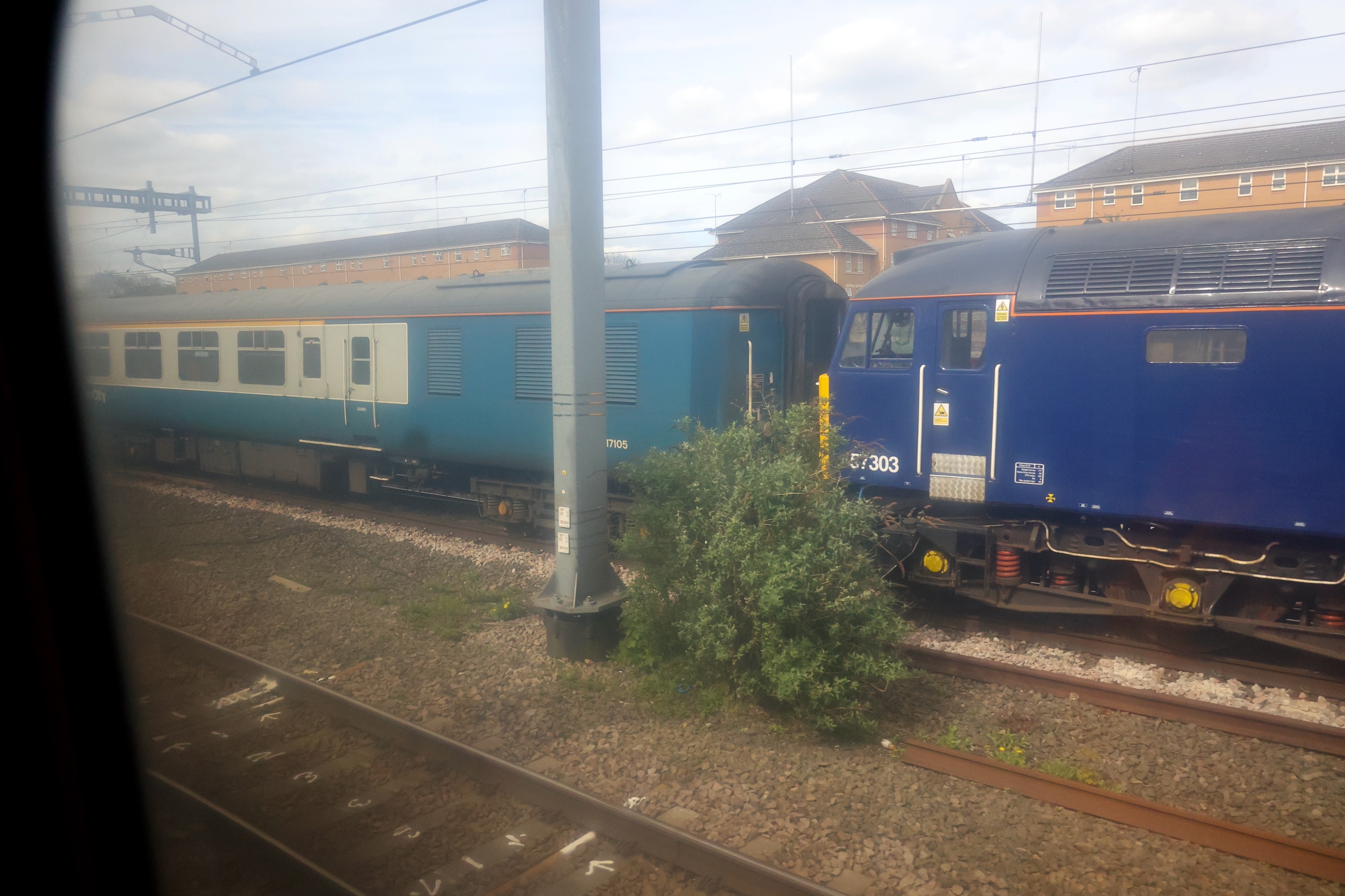 At London Paddington, GB Railfreight 57303 was waiting with a rake of blue Mk2 coaches ready for D1015's arrival.