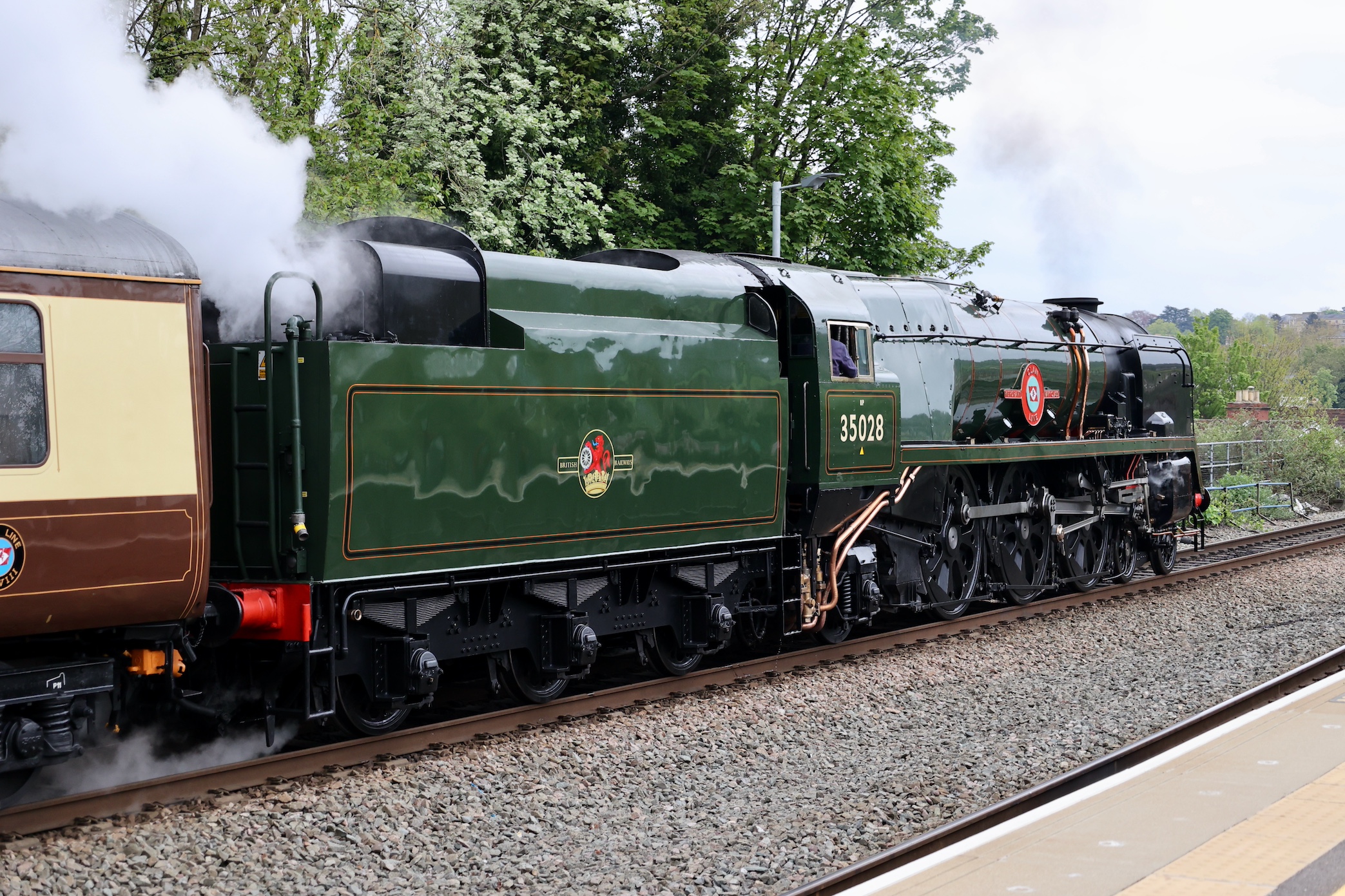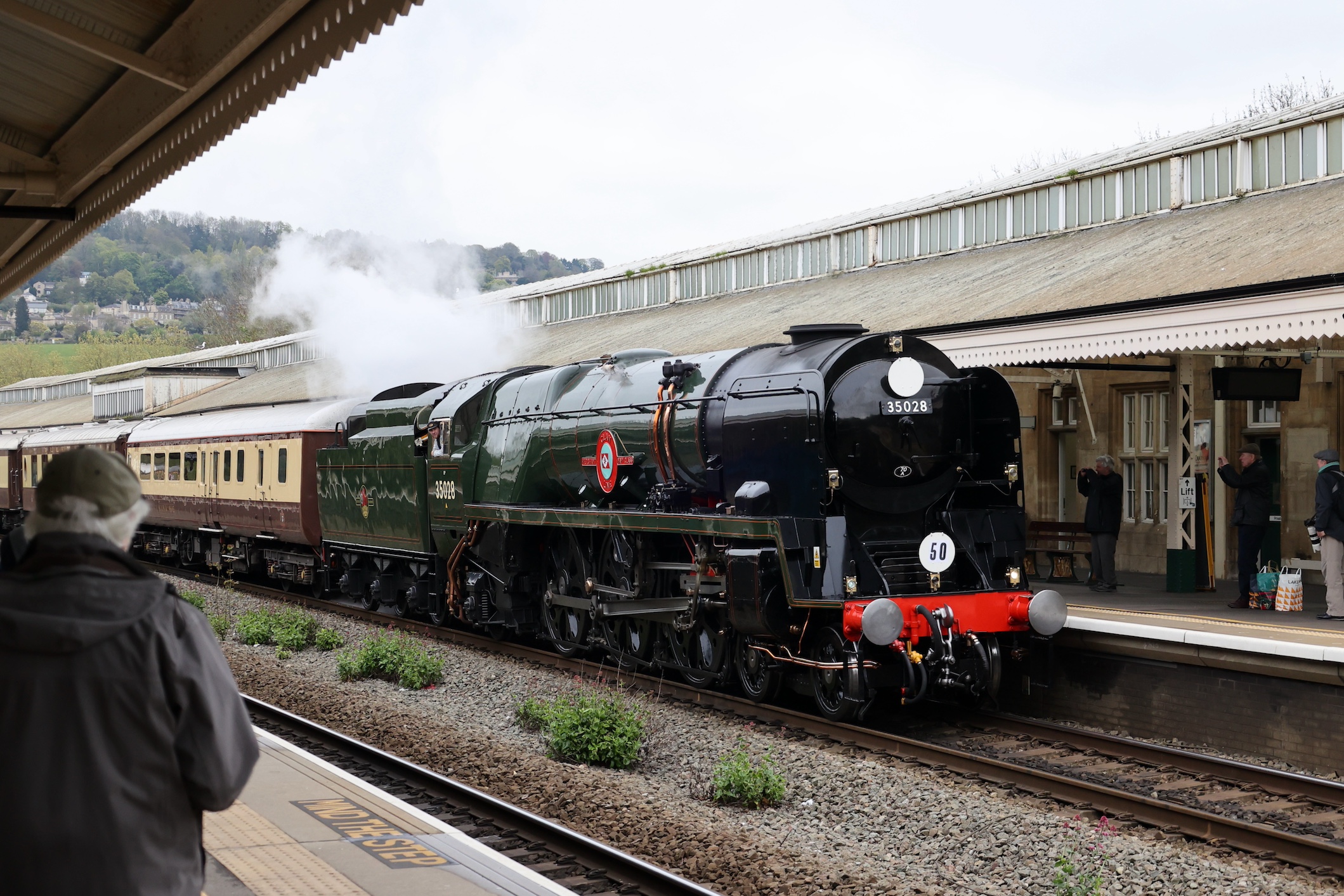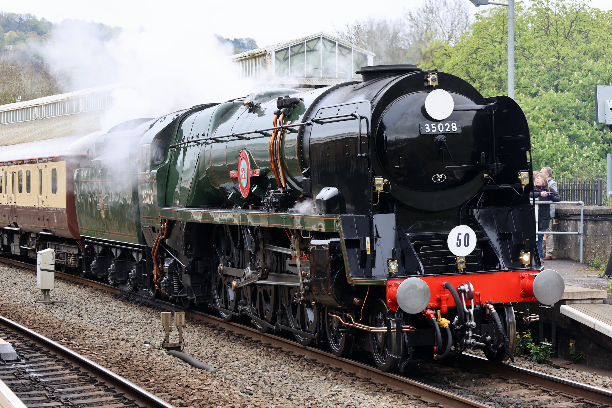 After arriving at Bath, 35028 waited for a few minutes to allow for photos before departing.