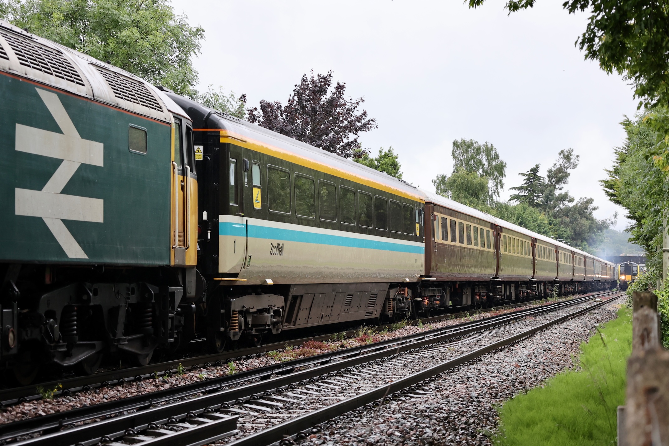 The addition of the Mark 3 caused some problems later on in the tour as it was identified that is is not cleared to run on third rail lines due to long swing link bogies that might contact the third rail. This resulted in the service being held at Poole and the Mark 3 coach being shunted into the sidings beyond Poole. The tour continued to Weymouth with a large delay.