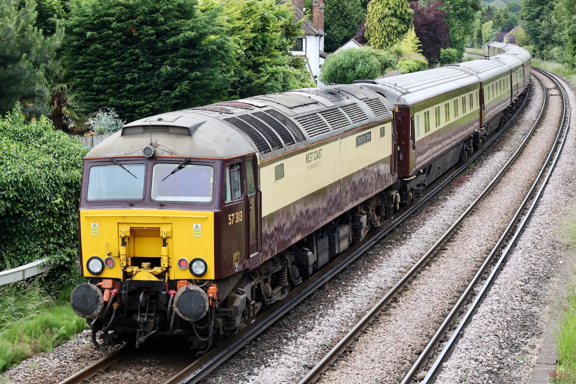 As the tour used many more coaches than Hounslow is capable of, the rear coaches and 57313 were the other side of the bridge beyond the station. Therefore the only photos of 57313 are from the departure of the ECS to Southall.