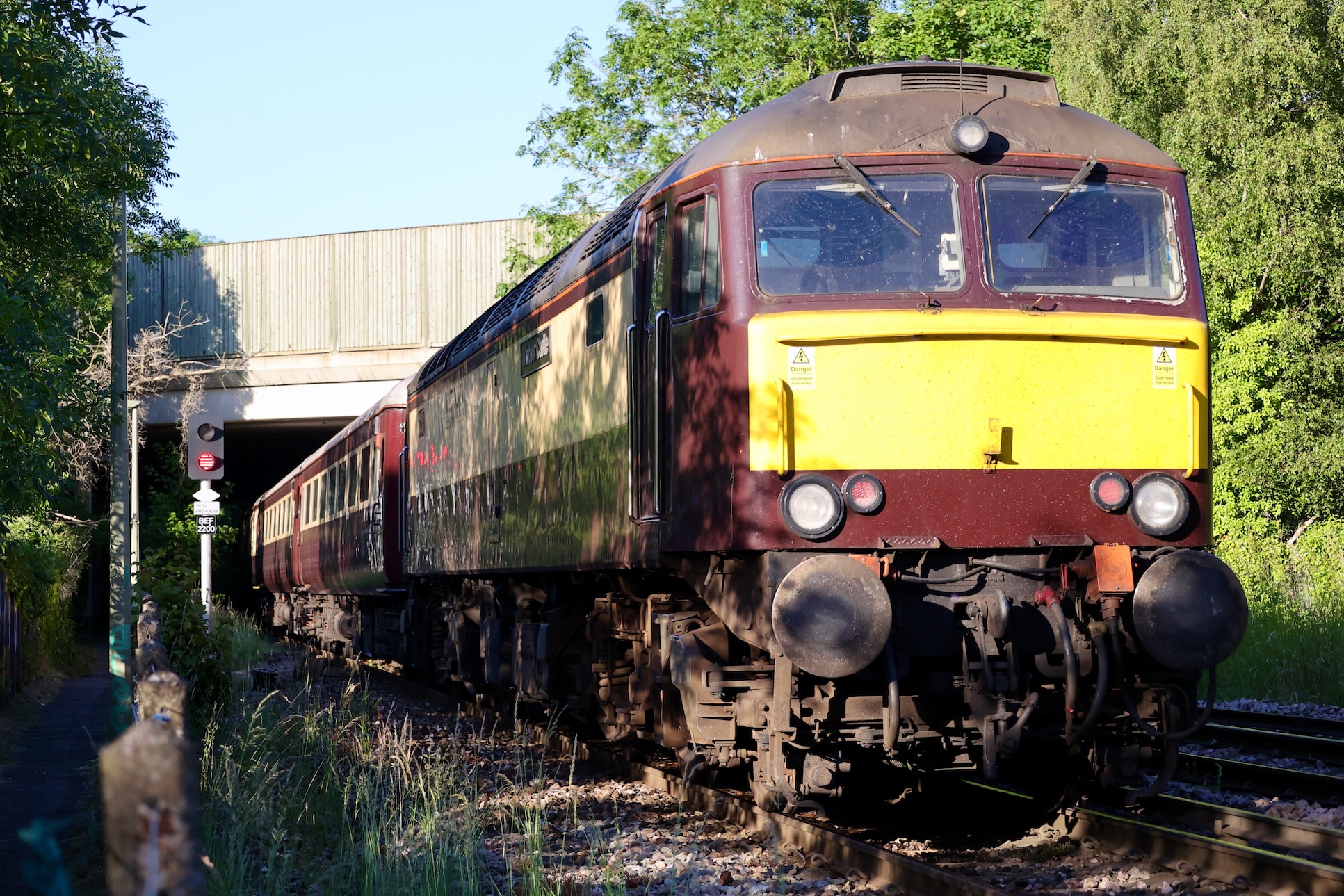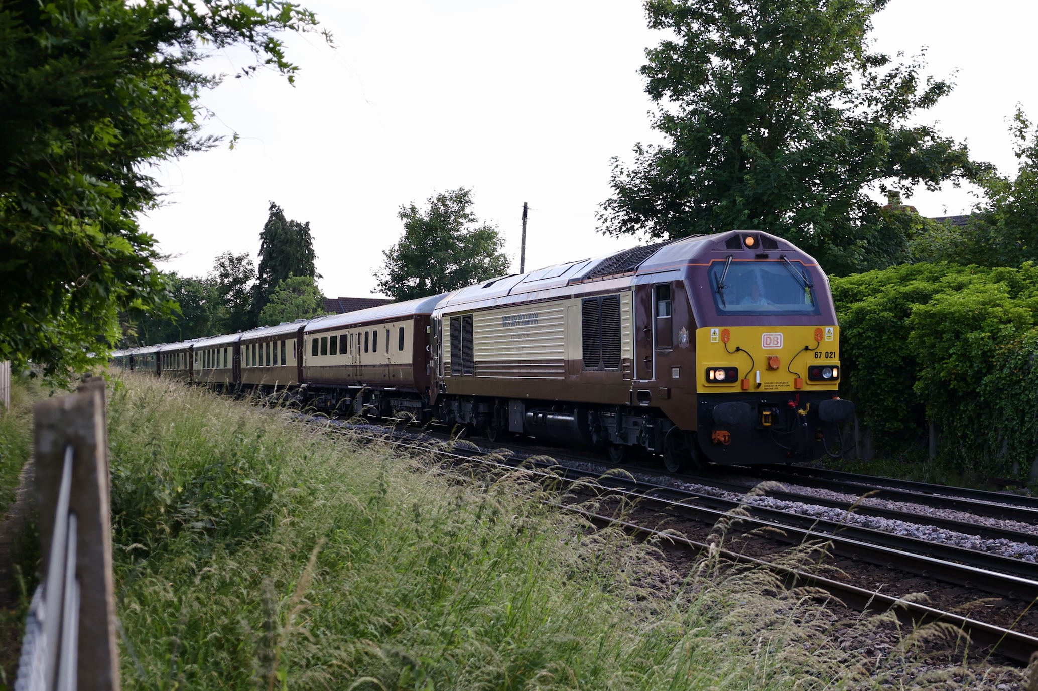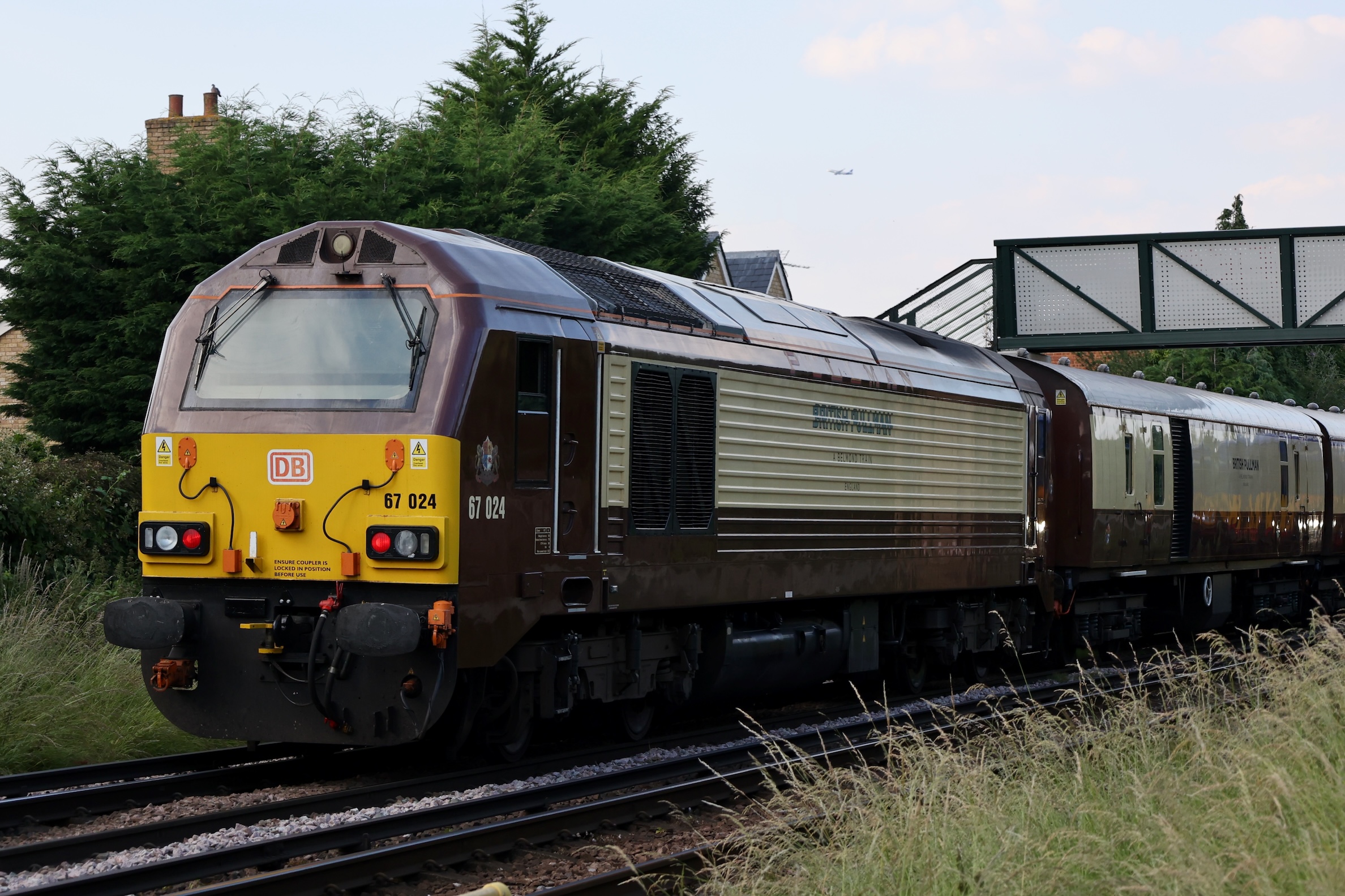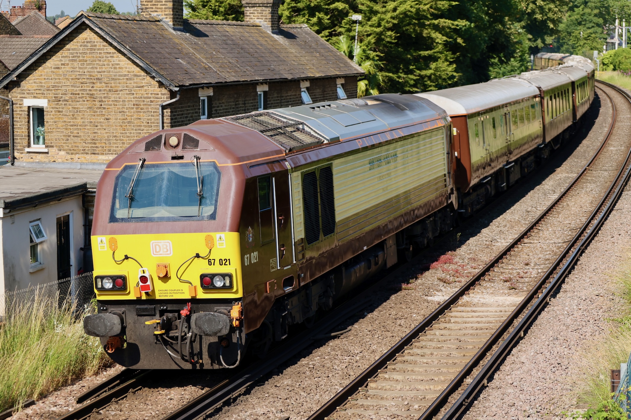 Following Clan Line into London Victoria was DB Cargo 67024 in Belmond livery. The tour runs without a support locomotive so one has to come from Stewarts Lane to Victoria to collect the train and take it back.