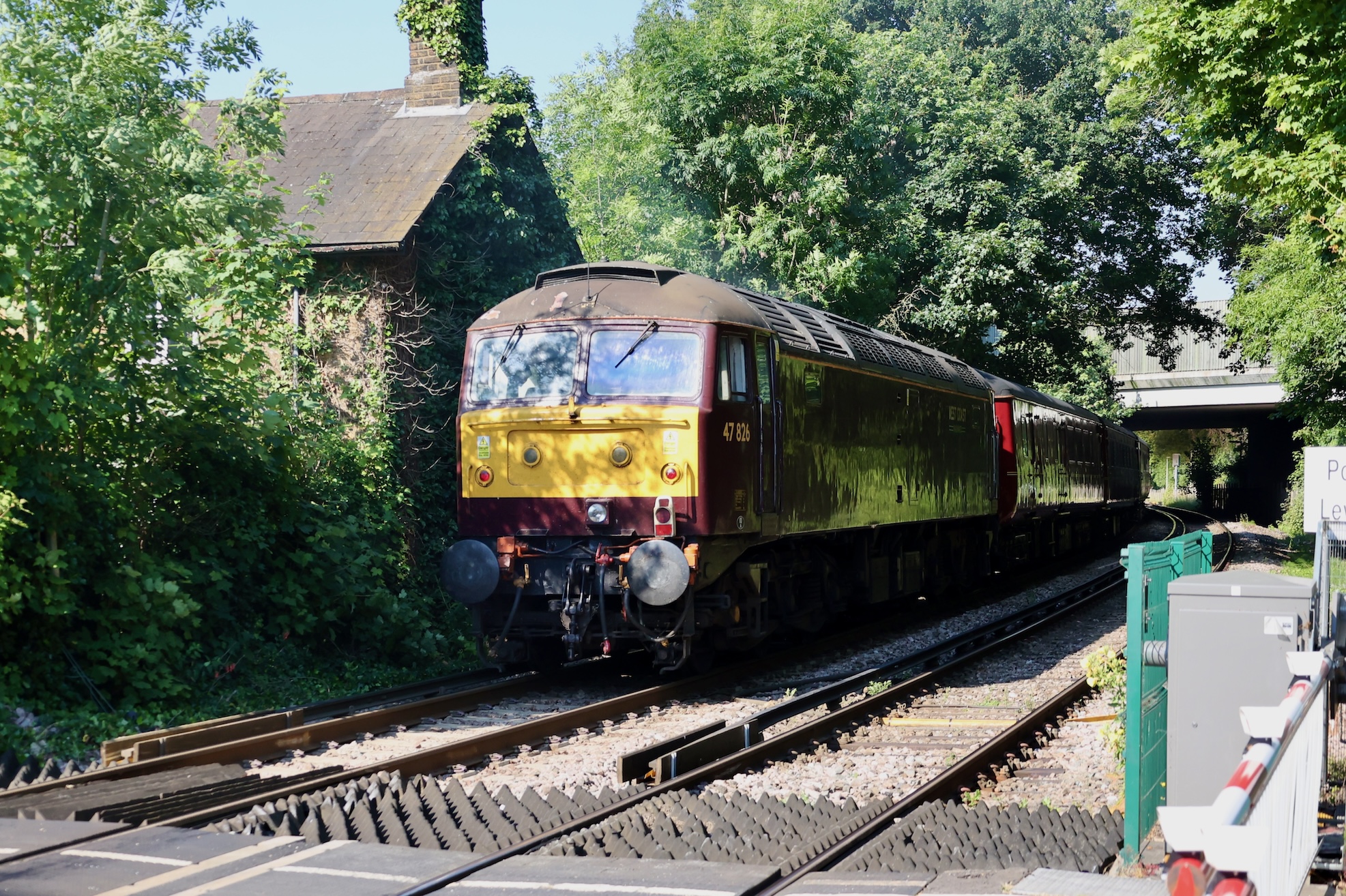 The disruption from the fires was sufficient enough that 44871 was left at Swanage and 47826 hauled the tour back as far as Clapham Junction direct up the South Western Main Line. Using the direct route through Winchester rather than reversing at Southampton and going round the loop through Romsey and Andover to Basingstoke. This reversal was to allow 44871 to lead but this was not needed with 47826 leading the full return journey. THe tour was also diverted through Surbition to Clapham Junction from Woking to make up the time lost due to missing paths due to the delays.