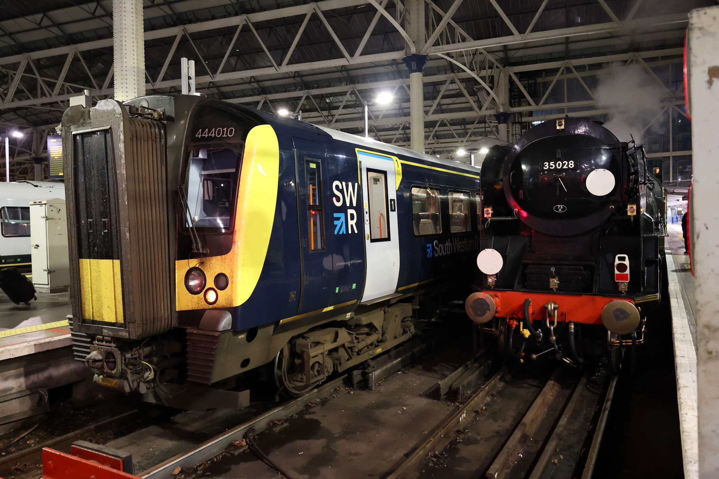While Clan Line was waiting to depart with 47812, 444010 arrived to be ready to operate 1S77 London Waterloo to Woking via Hounslow.