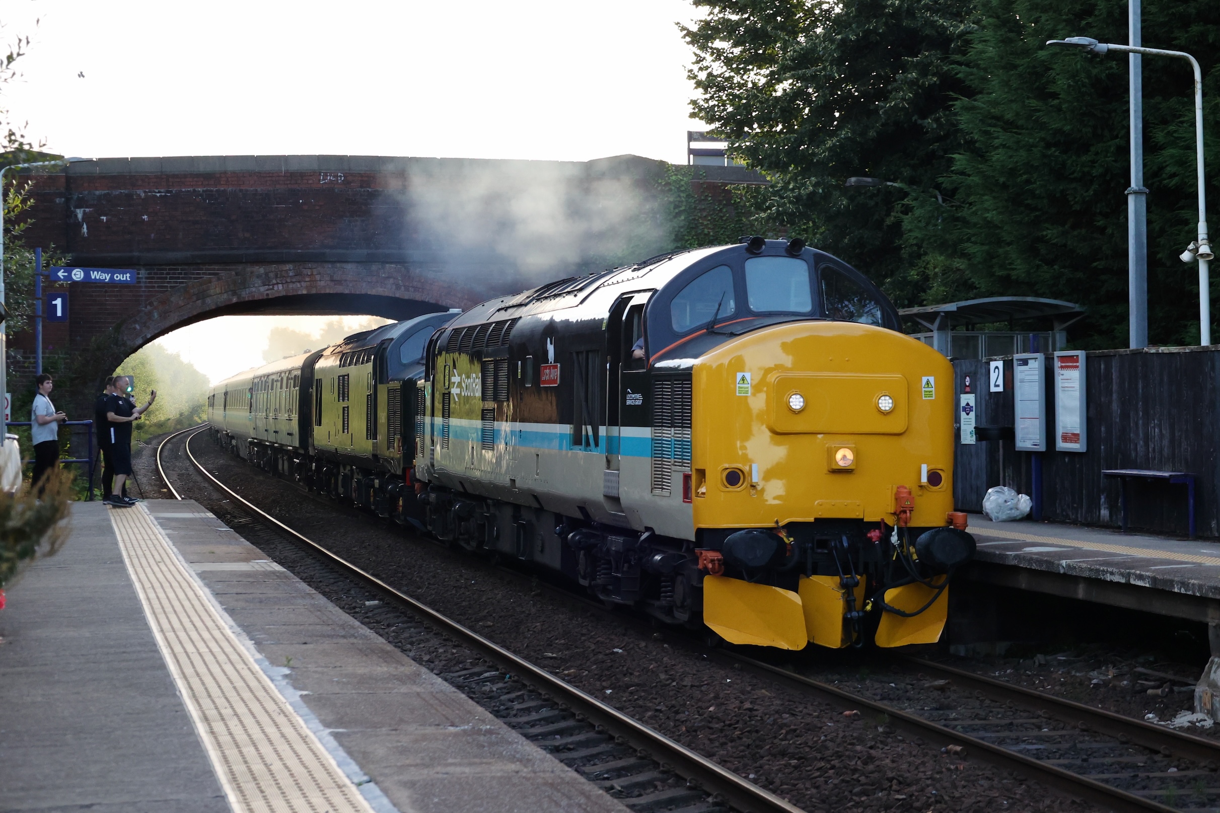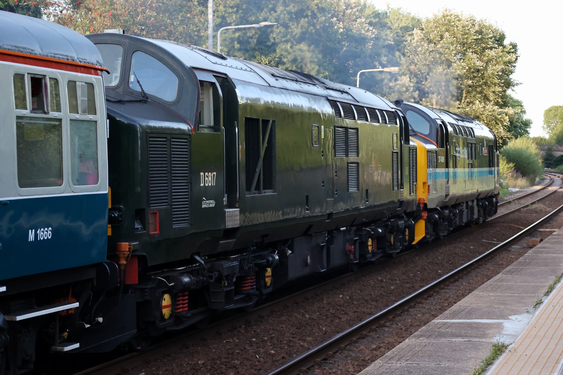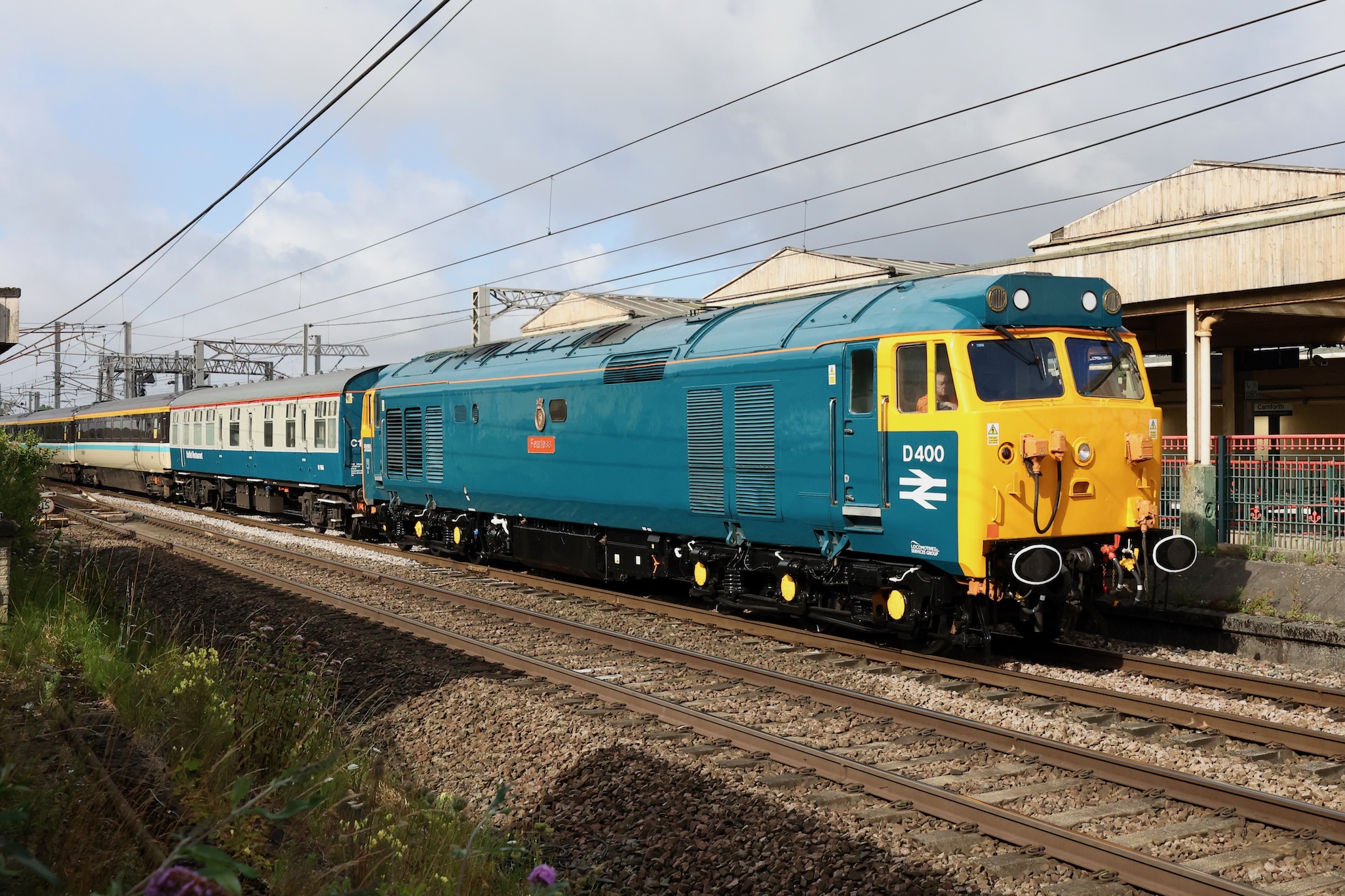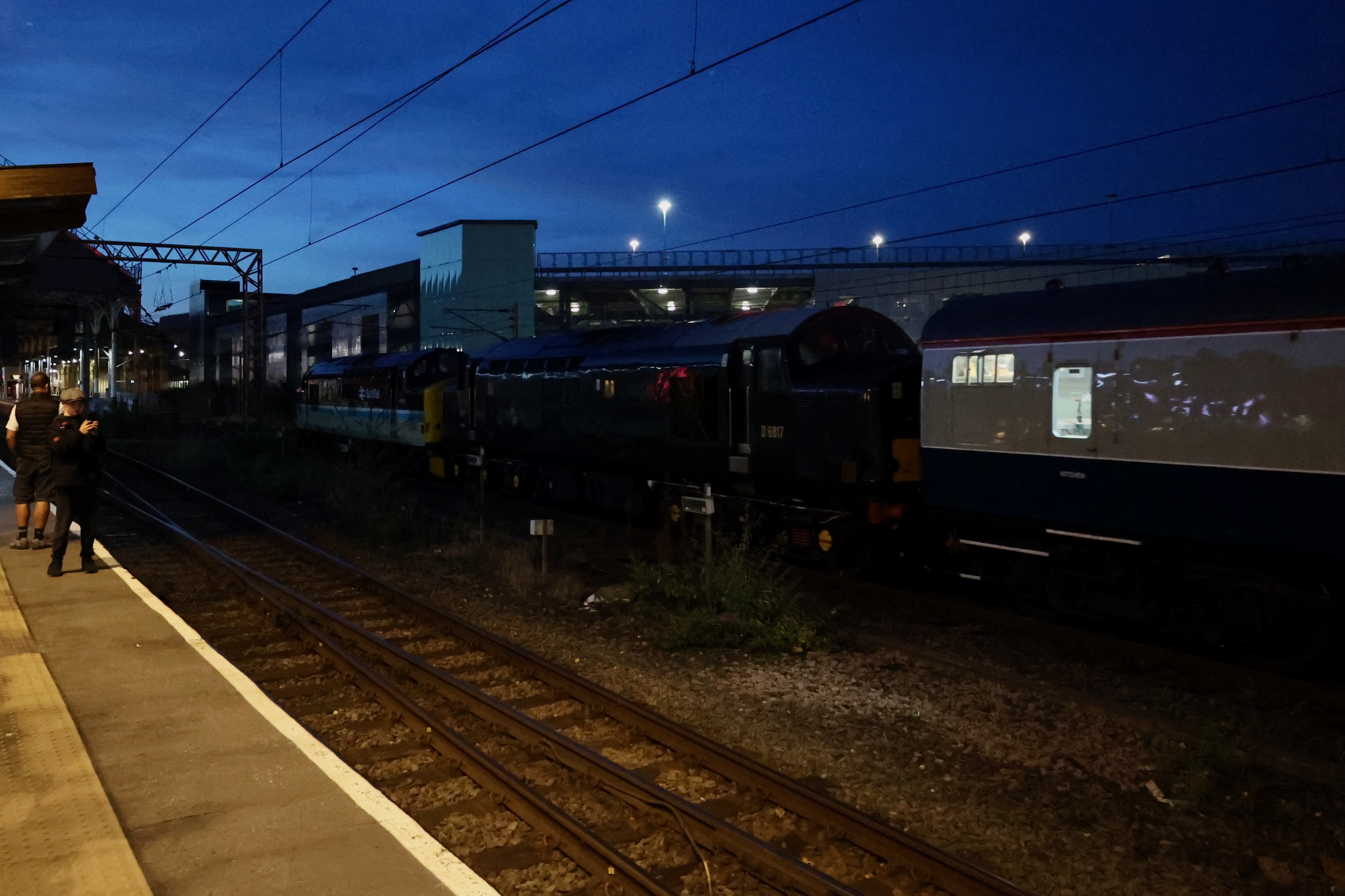 After the 40 and the 50 had departed for Crewe, the Class 37s should have been attached but a signalling problem at Wigan had delayed their arrival with the Class 20s for the final leg.