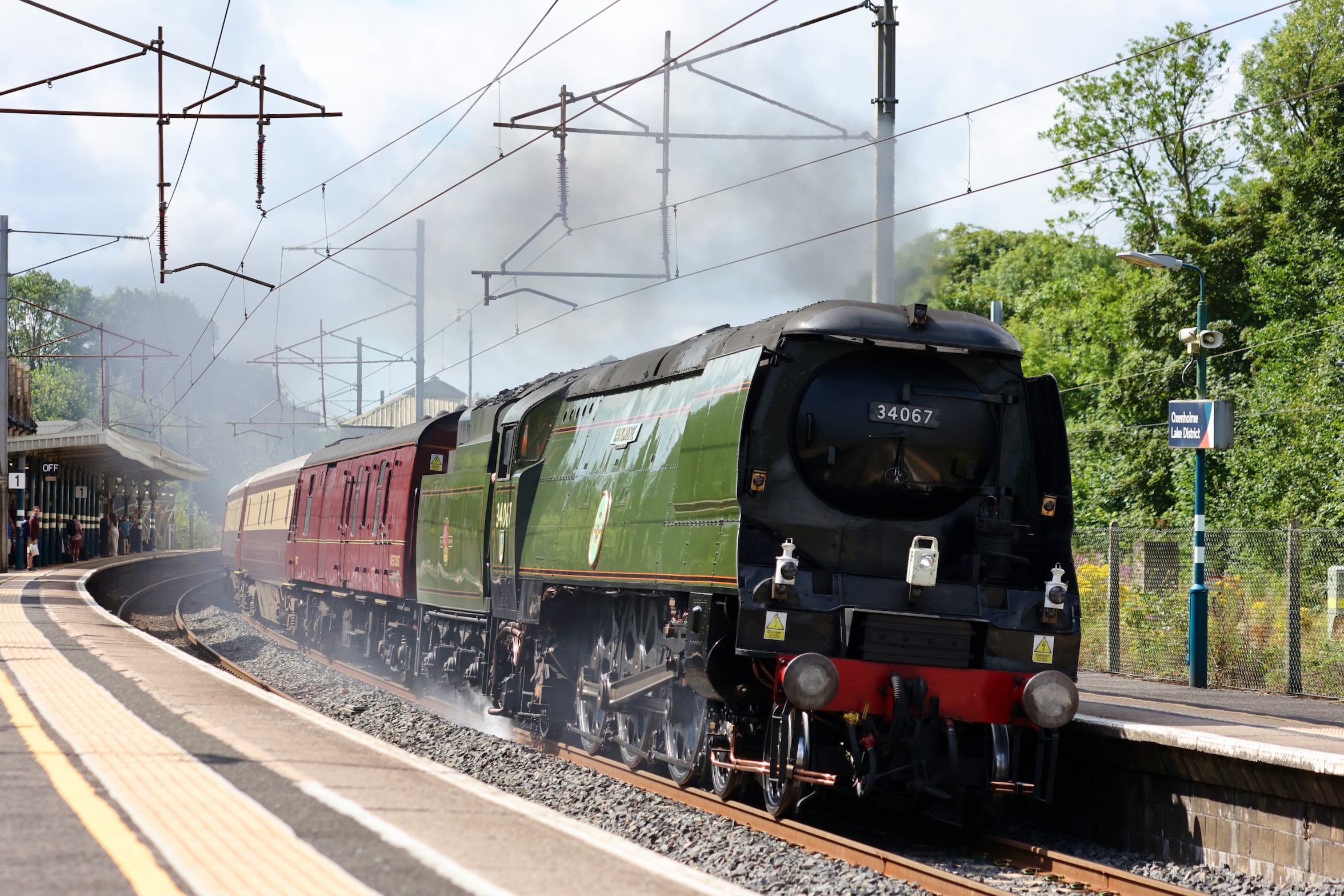 After passing Lancaster, the tour stopped at Carnforth Steamtown for 34067 "Tangmere" to take over for the remaining journey to Carlisle. It was possible to get ahead again and get to Oxenholme, Penrith or Carlisle before Tangmere so I went to Oxenholme Lake District so I could get back to Lancaster for lunch and the Heysham Port service.