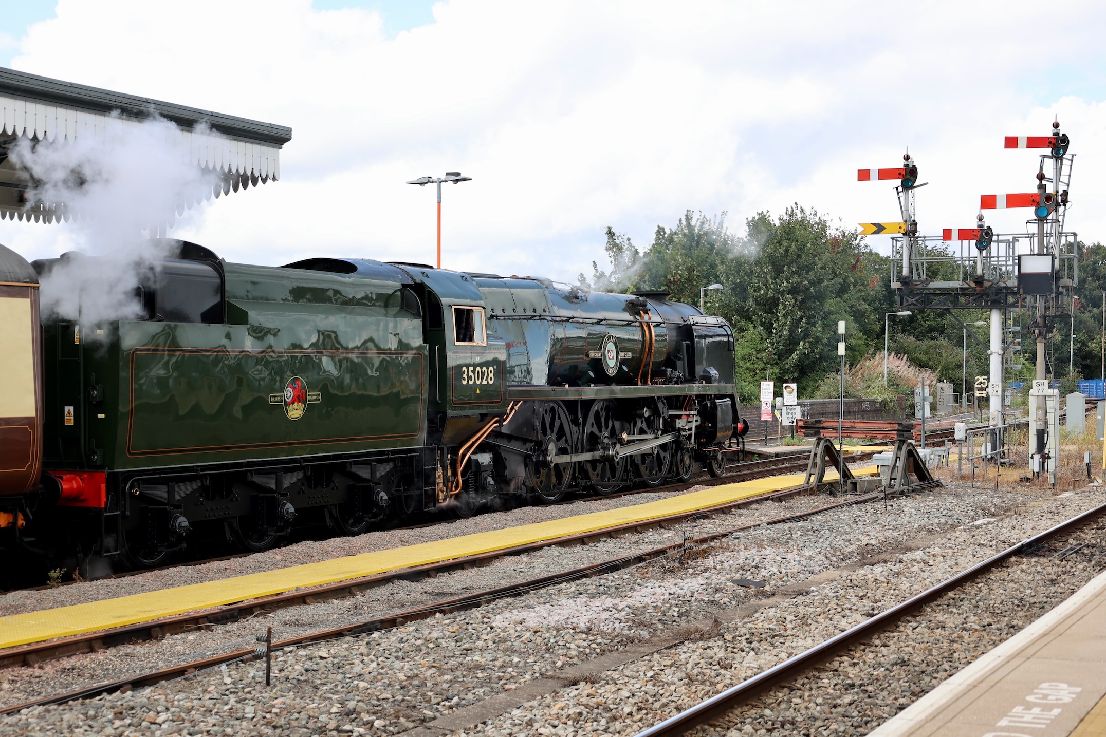 Clan Line was back out for The Railway Touring Company after the End of Southern Steam tour with the Cotswold Venturer tour to Worcester Shrub Hill from London Paddington. The planned route for the tour was to use Longhedge Junction to access the Windsor side of Clapham Junction before going to Reading via Richmond, Staines and Wokingham. After Reading, the planned route continued to Swindon and then through Kemble and Cheltenham Spa to Worcester Shrub Hill.