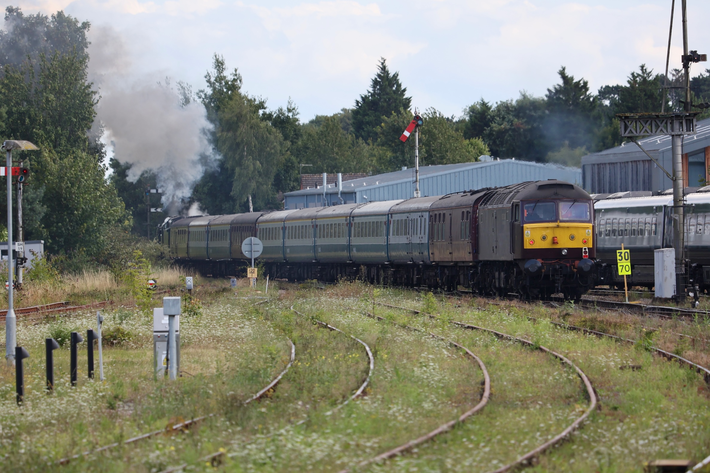Statesman Rail's tour to the seaside destinations of the Dorset Coast along the South Western Mainline was the first tour sighting of August. It is seen here passing Eastleigh on the way to Weymouth from Peterborough.