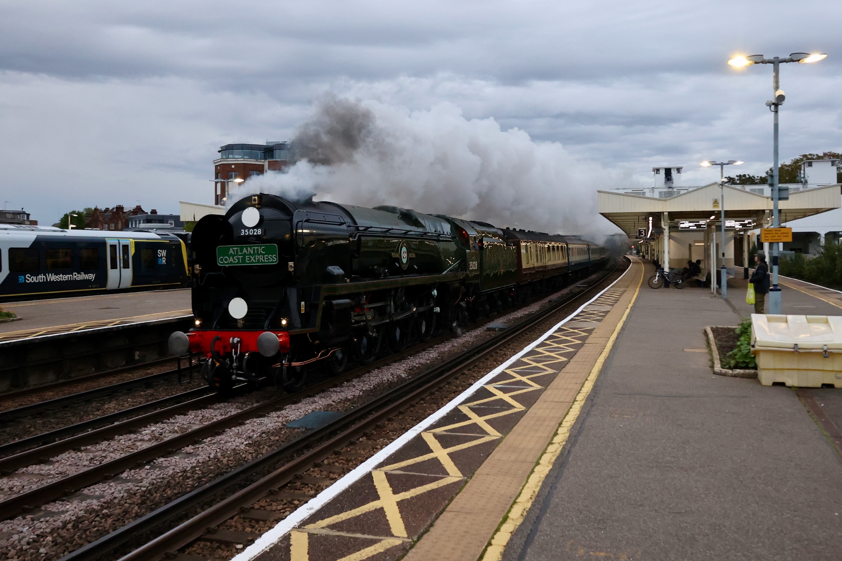 The Atlantic Coast Express is the third of five tours operated by Clan Line for the Railway Touring Company, after the End of Southern Steam tour in July and The Cotswold Venturer in August. The tour should have taken place on 28th September but it was postponed to 12th October due a landslip in the Honiton area.