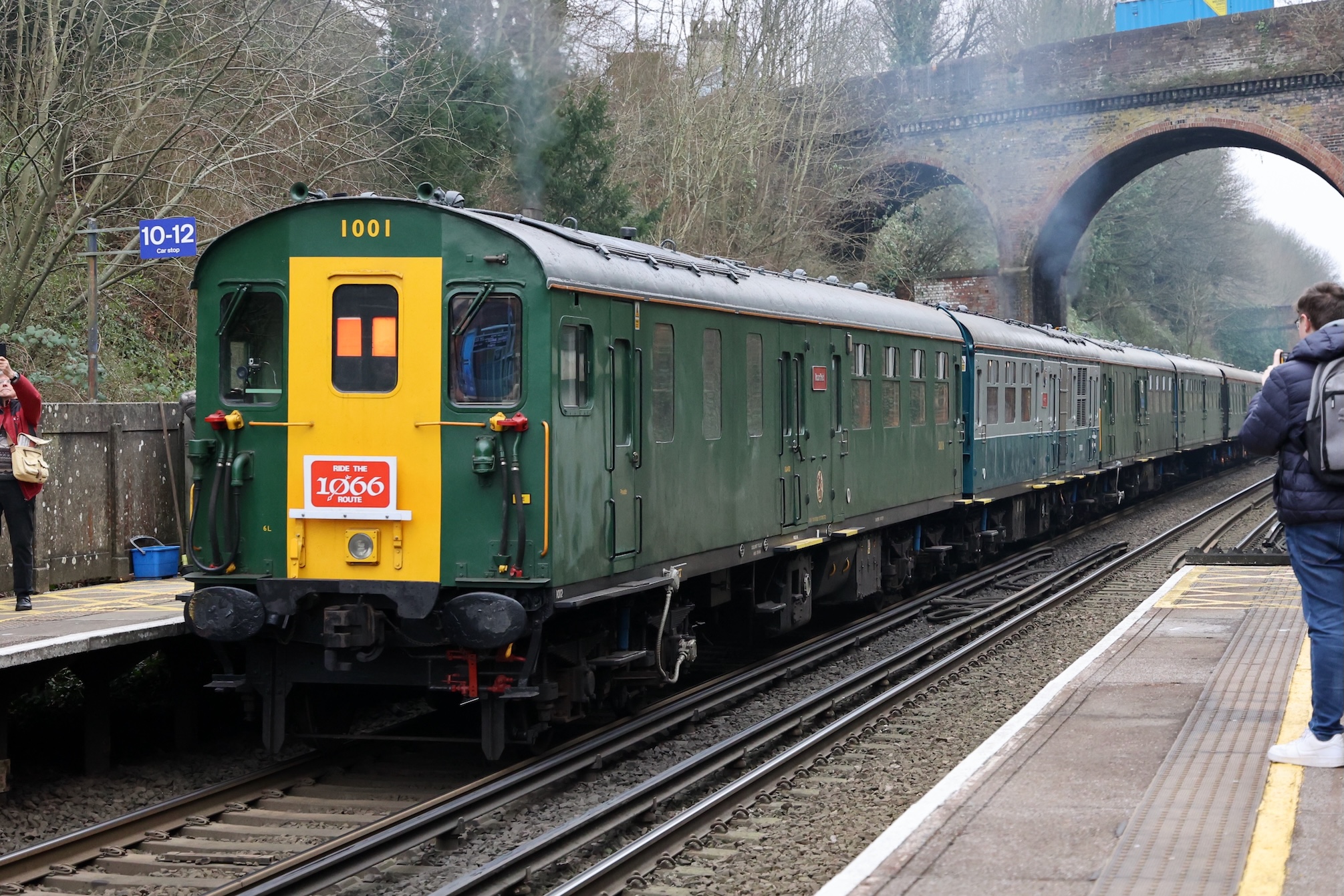 After the short stop, the train departed for Woking where it reversed back to Guildford and continued on to Hastings via the normal route.