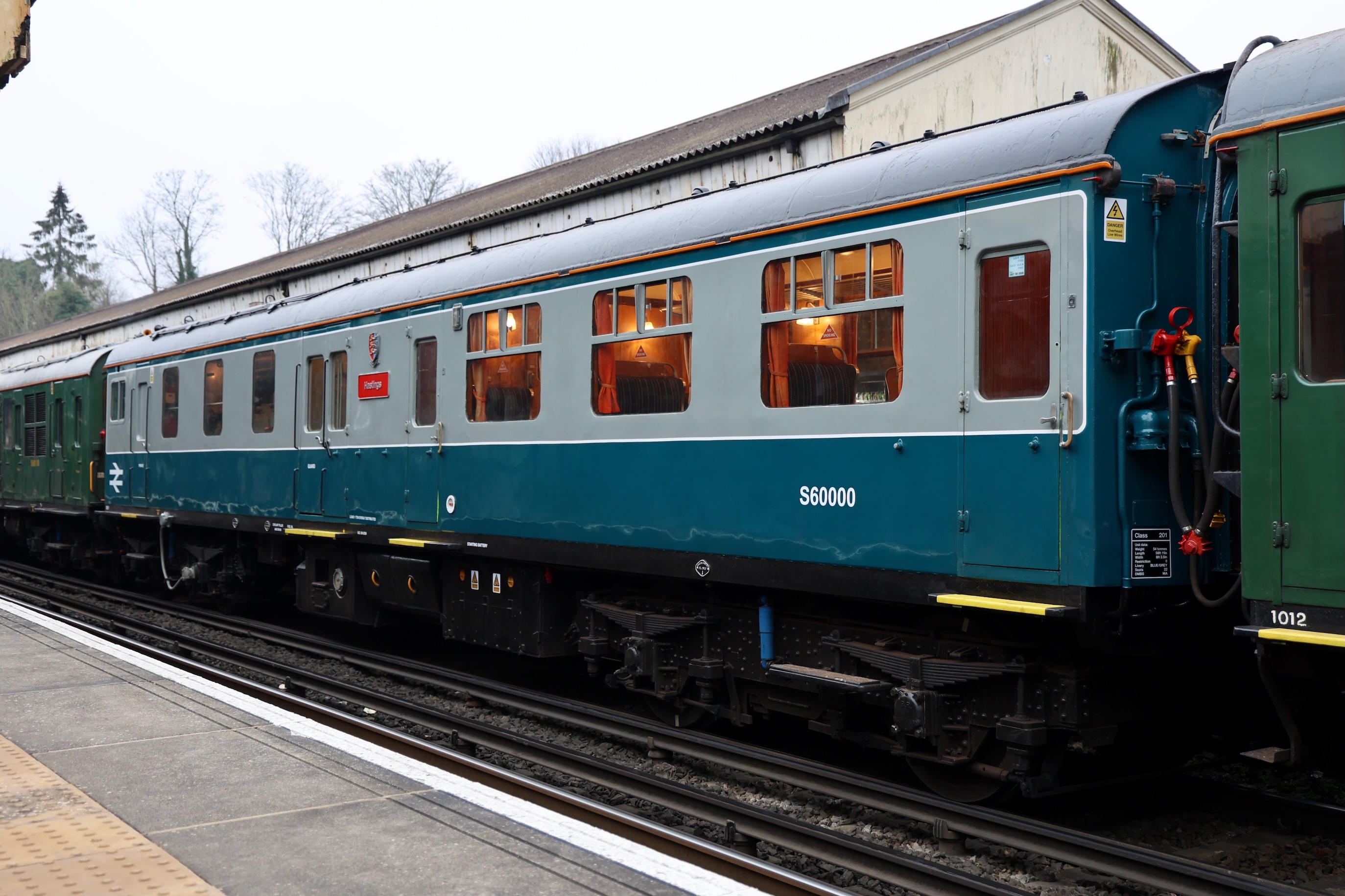 In the train was 60000, the first Hastings Unit motor coach. This coach is a 6S rather than the 6L of the other motor coaches. This means that the coach is shorter with only 3 windows in the passenger compartment instead of 4 in the 6L coaches.